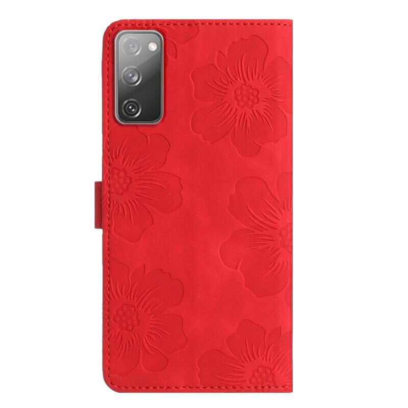 Για Samsung Galaxy S20 FE λουλούδι ανάγλυφο μοτίβο δερμάτινη θήκη τηλεφώνου (κόκκινο)