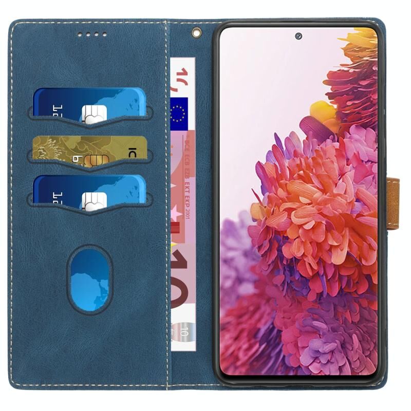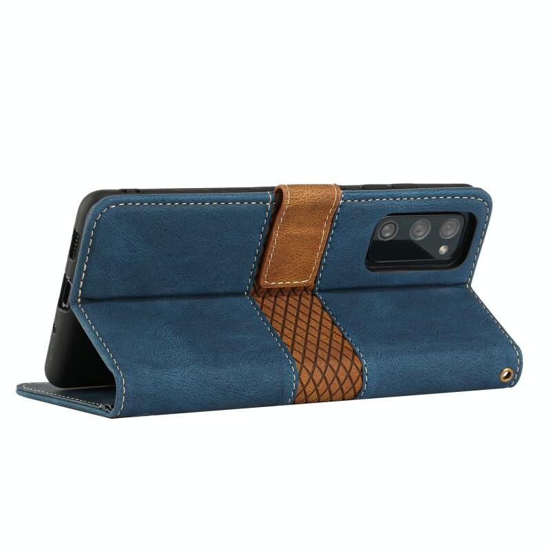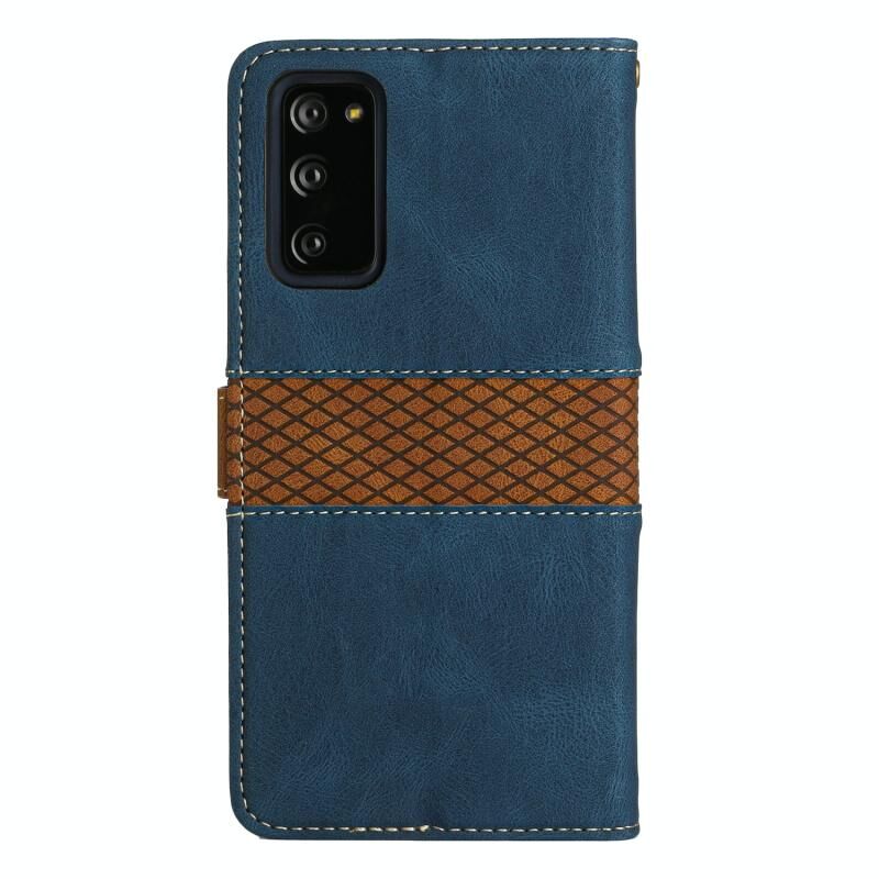 Για Samsung Galaxy S20 FE Πλέγμα ραφή δερμάτινη θήκη τηλεφώνου με κορδόνι (μπλε)