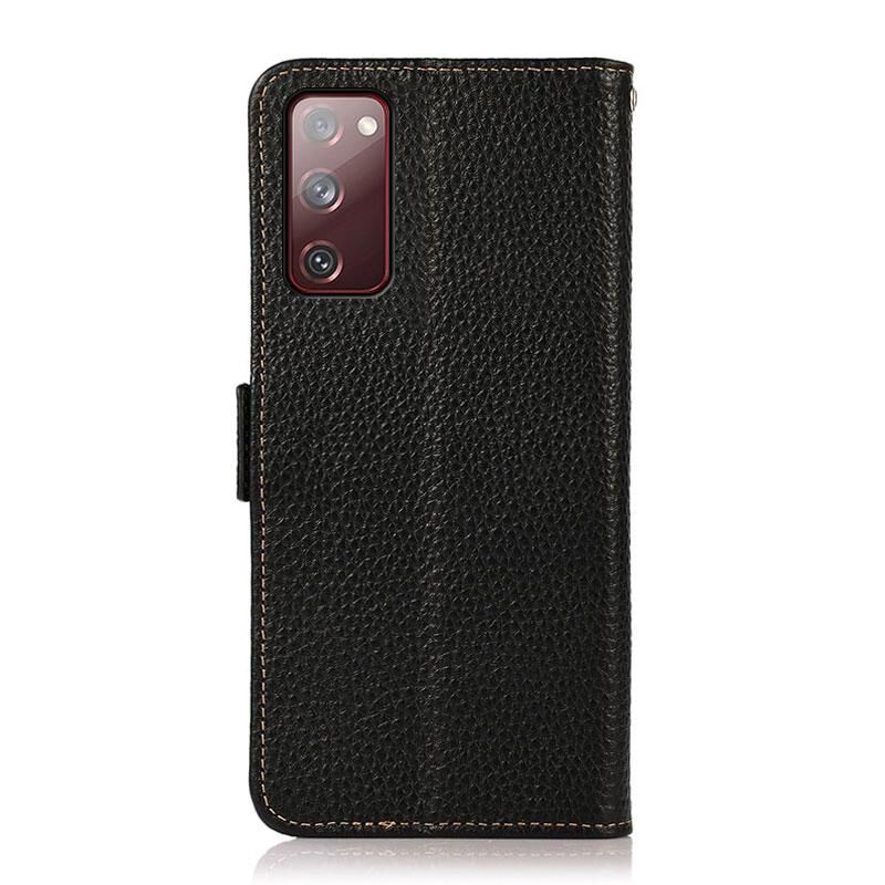 Θήκη κινητού τηλεφώνου Samsung Galaxy S20 FE KHAZNEH με μαγνητικό κλείσιμο στο πλάι, από γνήσιο δέρμα Litchi, με προστασία RFID (Μαύρο)