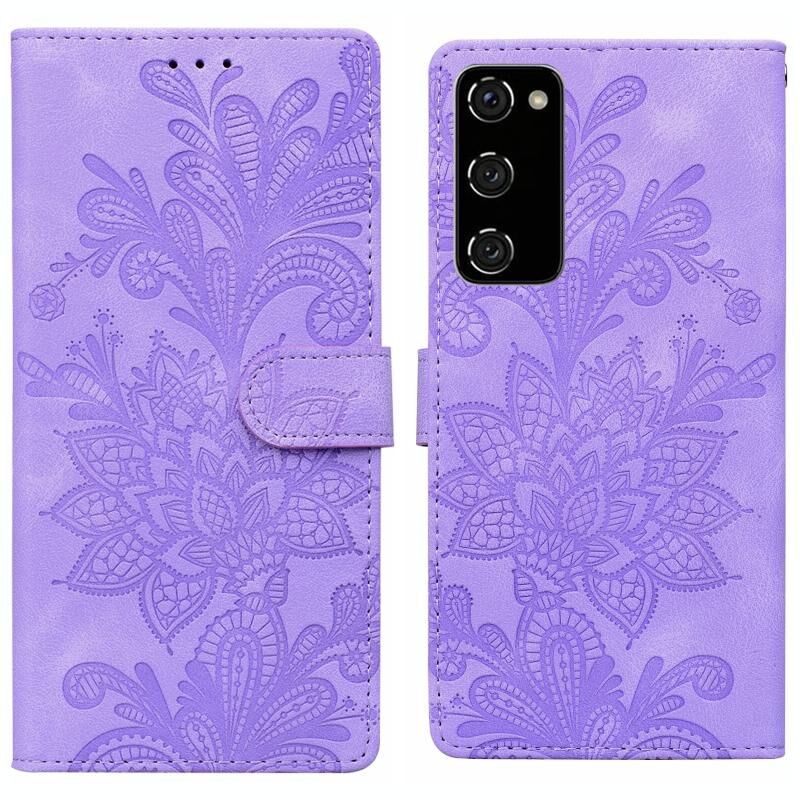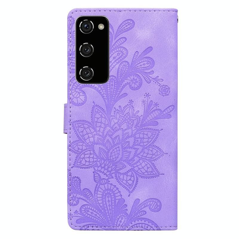 Θήκη κινητού τηλεφώνου Samsung Galaxy S20 FE με δαντέλα, λουλουδάτο ανάγλυφο, μαγνητικό κούμπωμα και λουρί καρπού (Πράσινο)