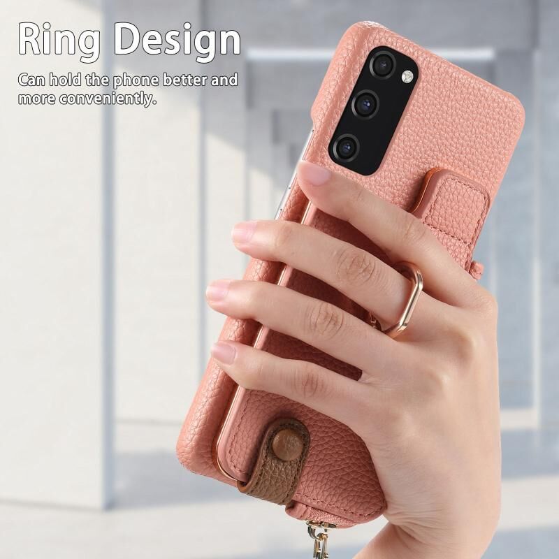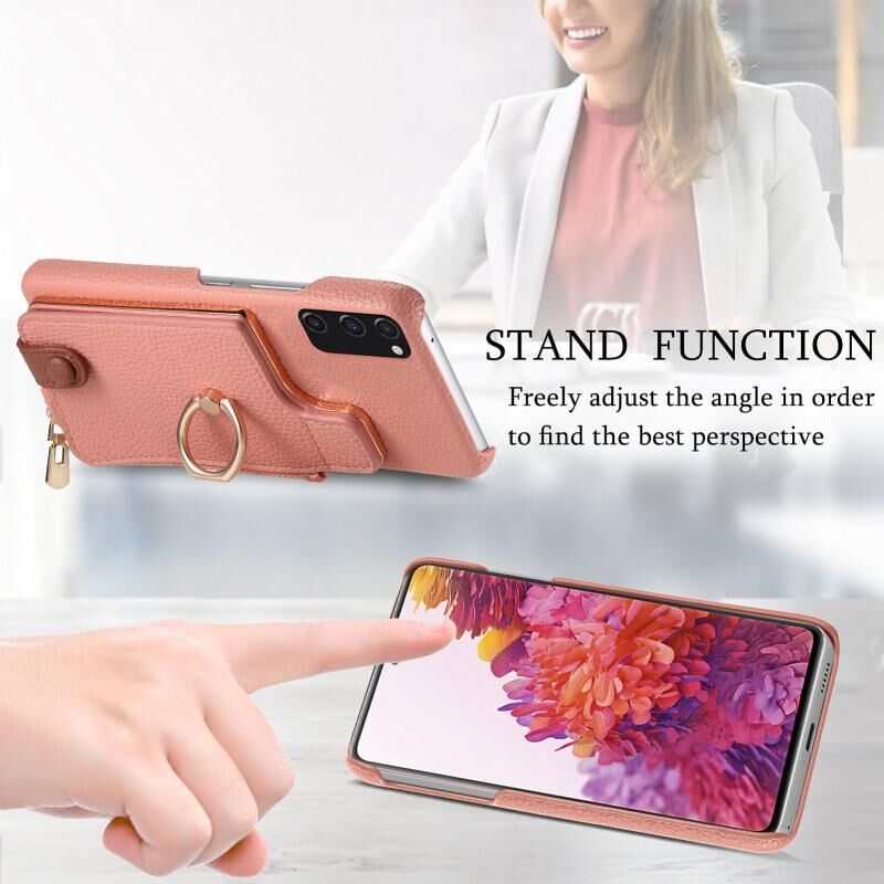 Για Samsung Galaxy S20 FE Litchi δέρμα λάδι Edge δαχτυλίδι φερμουάρ πορτοφόλι πίσω υπόθεση τηλεφώνου (ροζ)