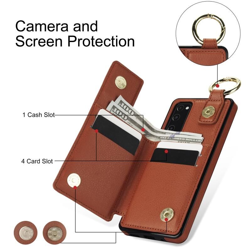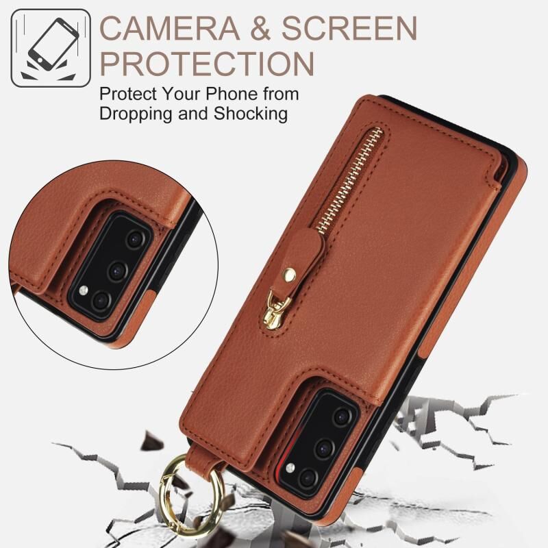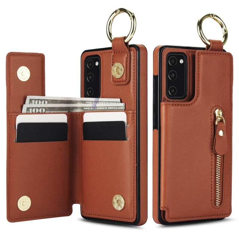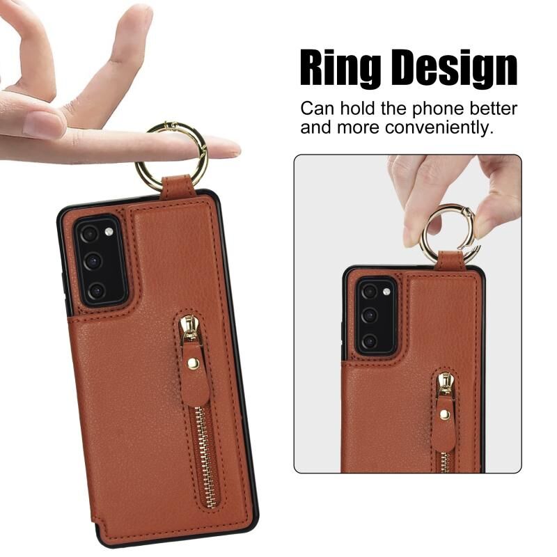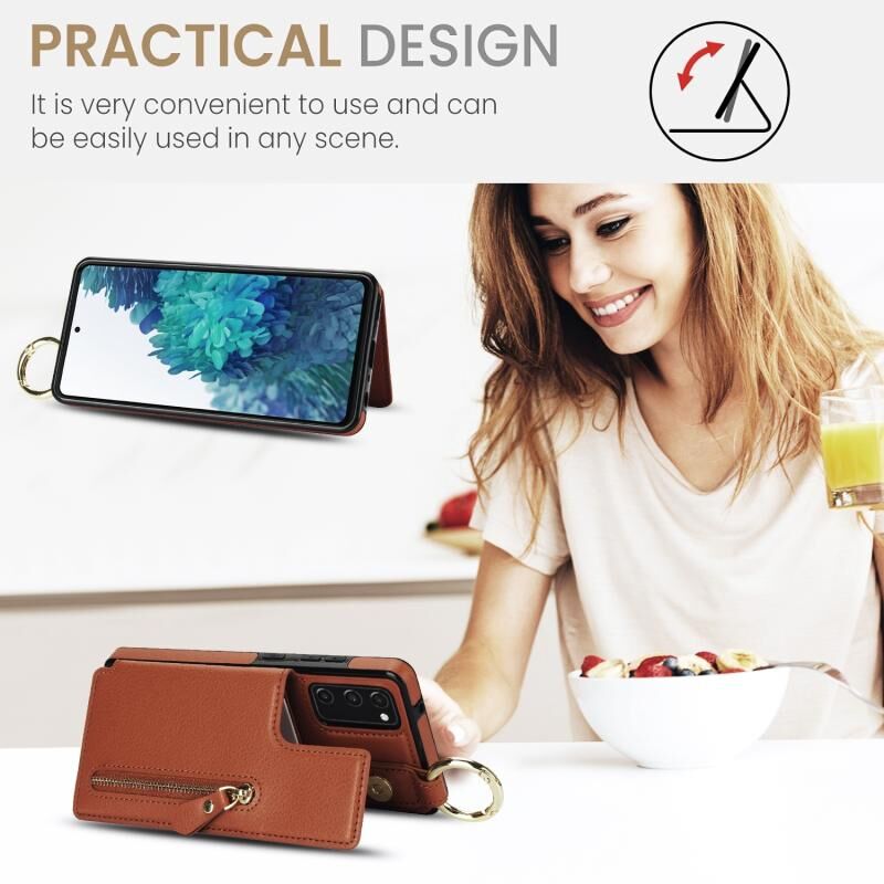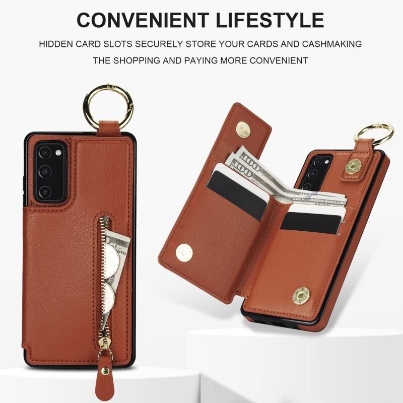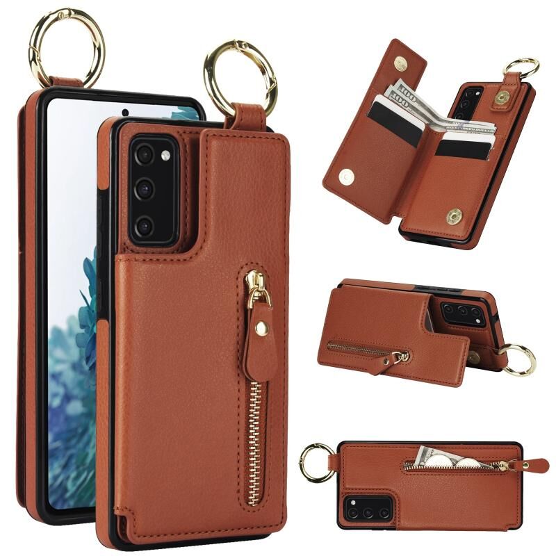 Για Samsung Galaxy S20 FE Litchi υφή φερμουάρ διπλή πόρπη κάρτα τσάντα υπόθεση τηλεφώνου (καφέ)