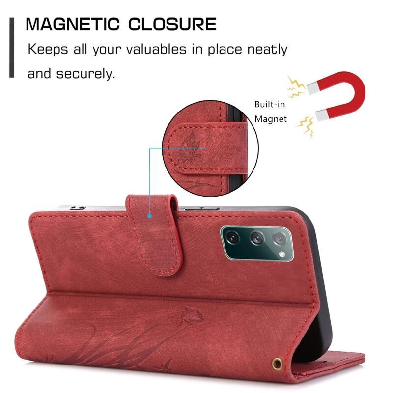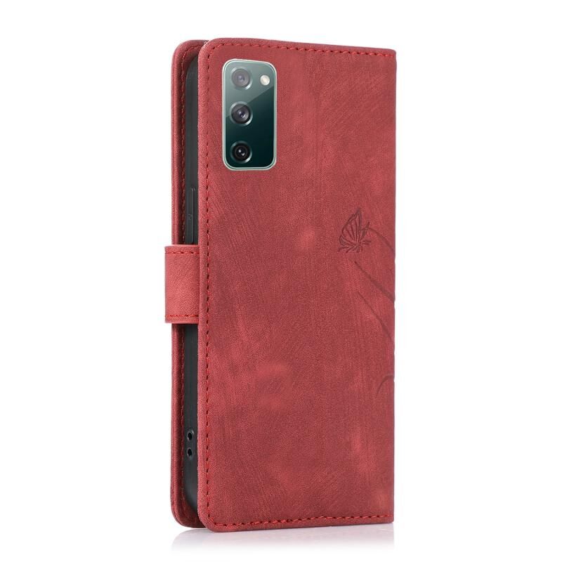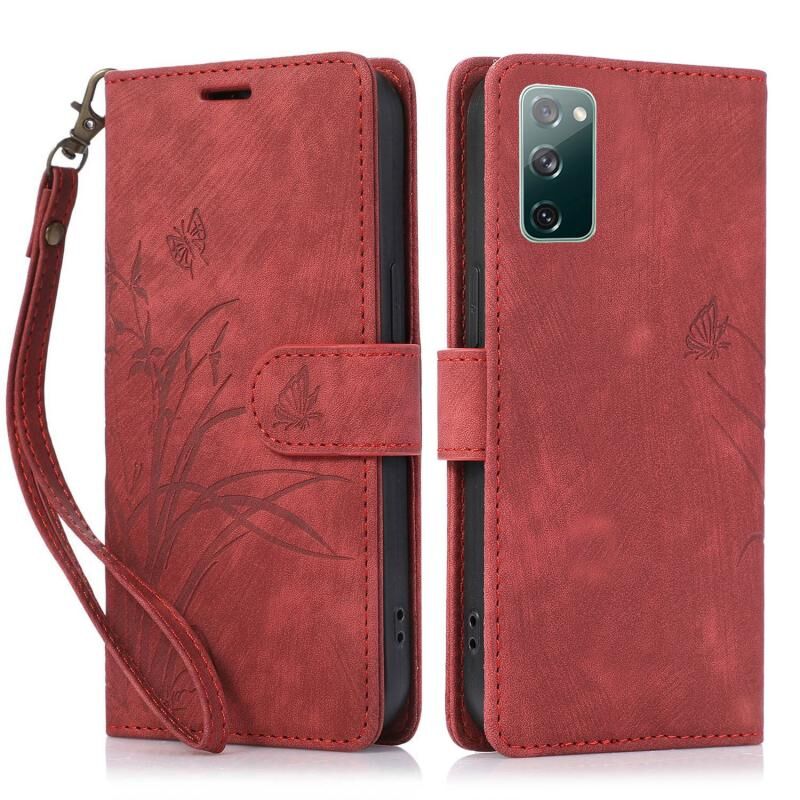 For Samsung Galaxy S20 FE Orchid Butterfly Embossed Leather Phone Case(Red)