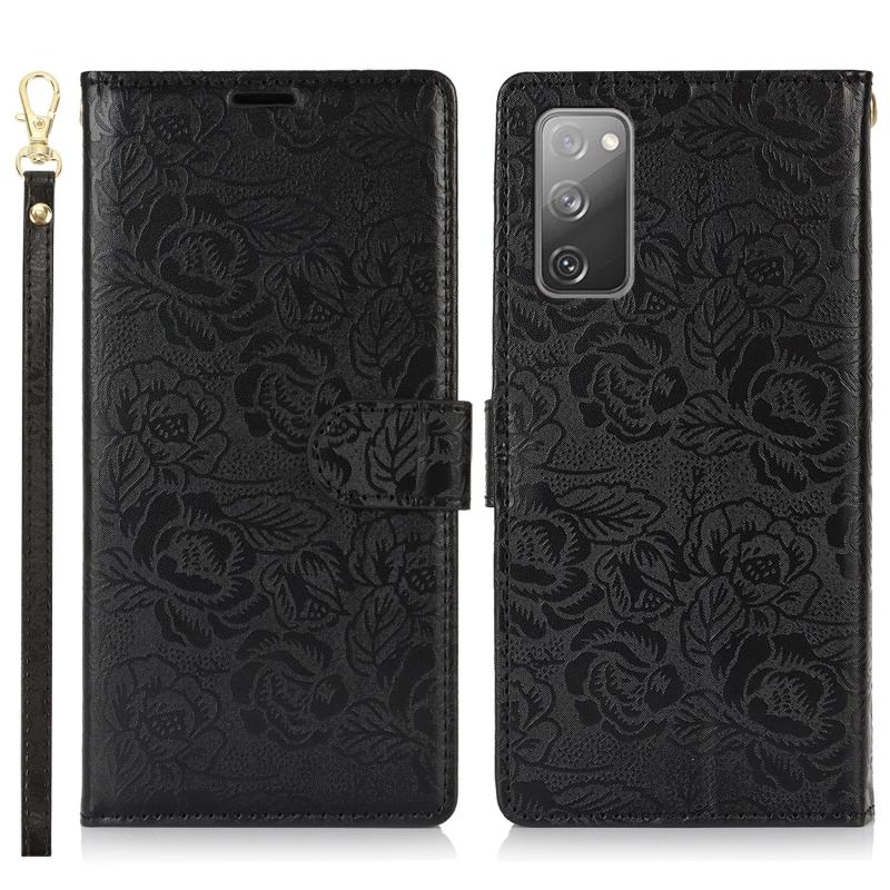 For Samsung Galaxy S20 FE Peony Flowers Imprint Leather Phone Case(Black)