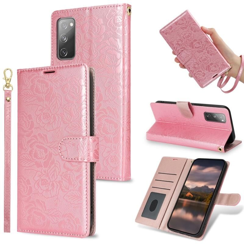 For Samsung Galaxy S20 FE Peony Flowers Imprint Leather Phone Case(Pink)
