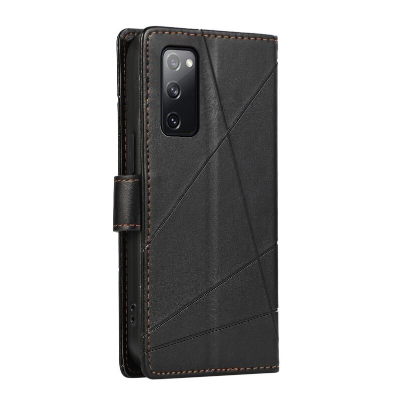 Θήκη τηλεφώνου Samsung Galaxy S20 FE από γνήσιο δέρμα PU με ανάγλυφη υφή και λεπτομέρειες γραμμής (Μαύρο)