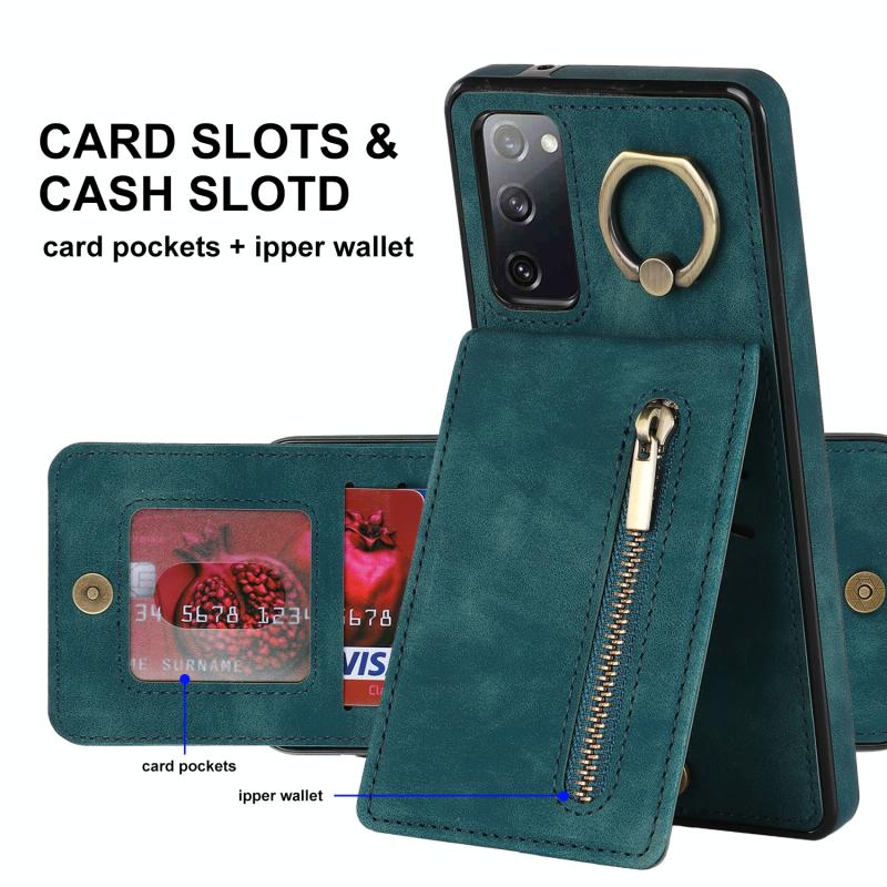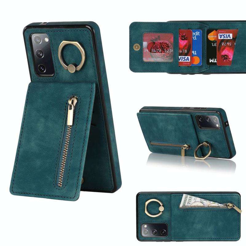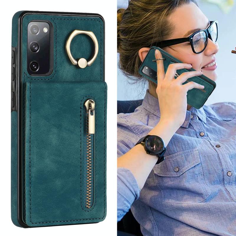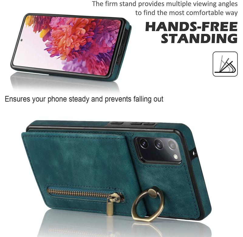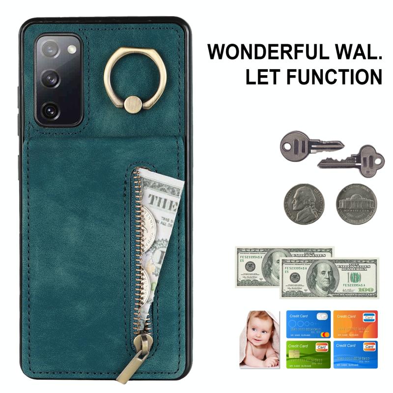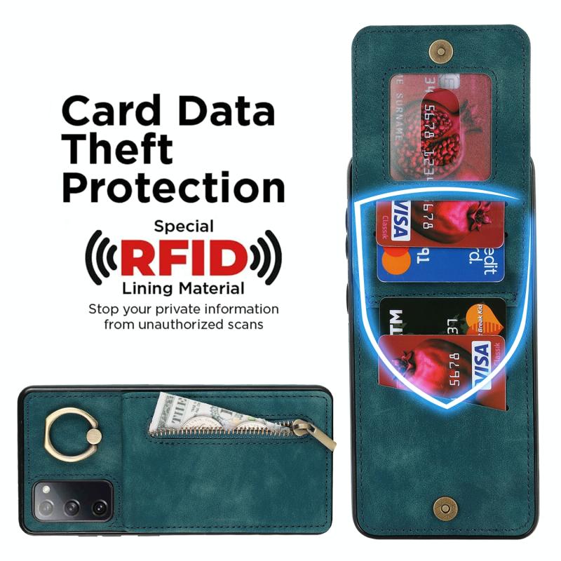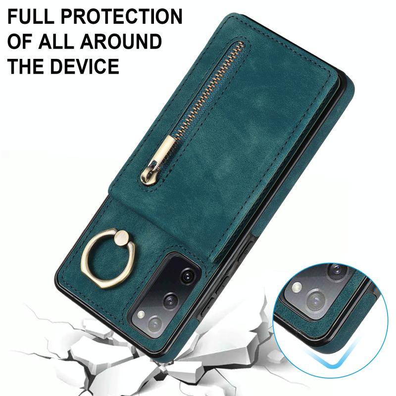 Θήκη κινητού τηλεφώνου Samsung Galaxy S20 FE με ρετρό δακτύλιο και θήκη καρτών RFID με φερμουάρ (Μπλε)