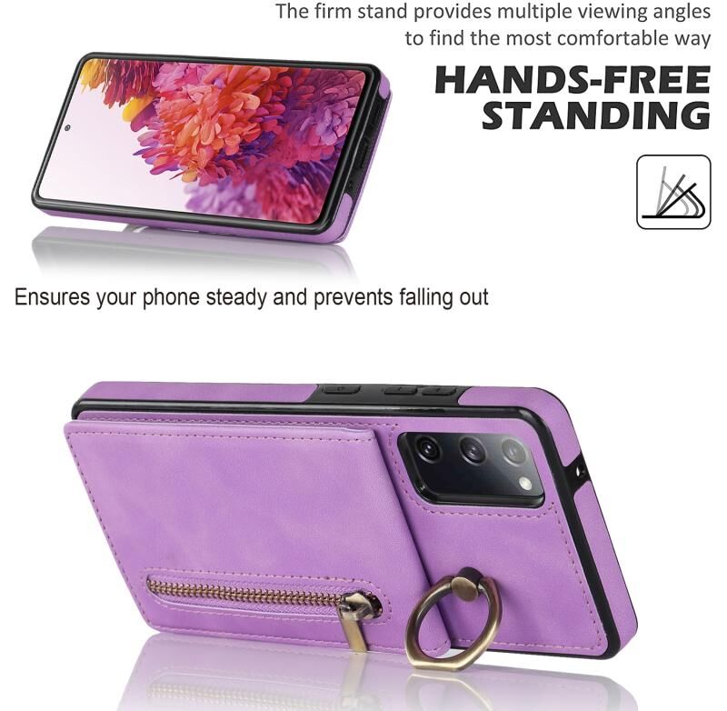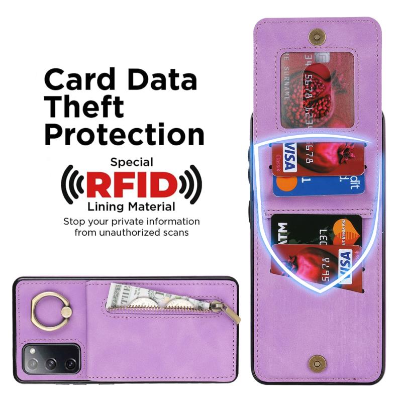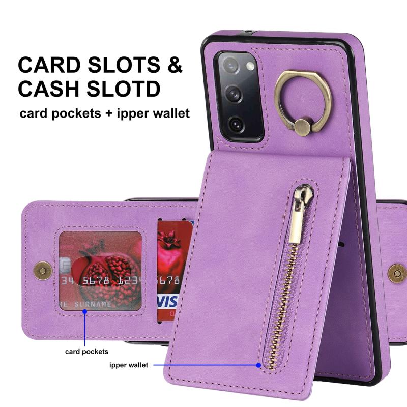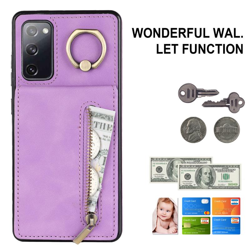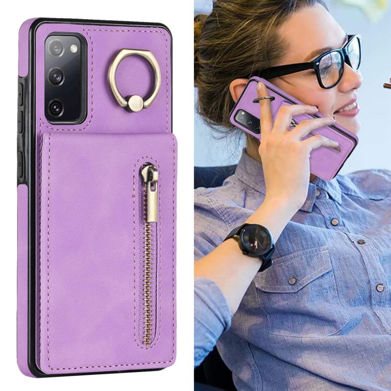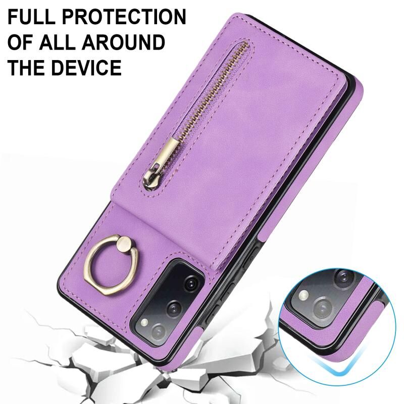 Θήκη κινητού τηλεφώνου Samsung Galaxy S20 FE με ρετρό δακτύλιο και θήκη καρτών RFID με φερμουάρ (Μωβ)