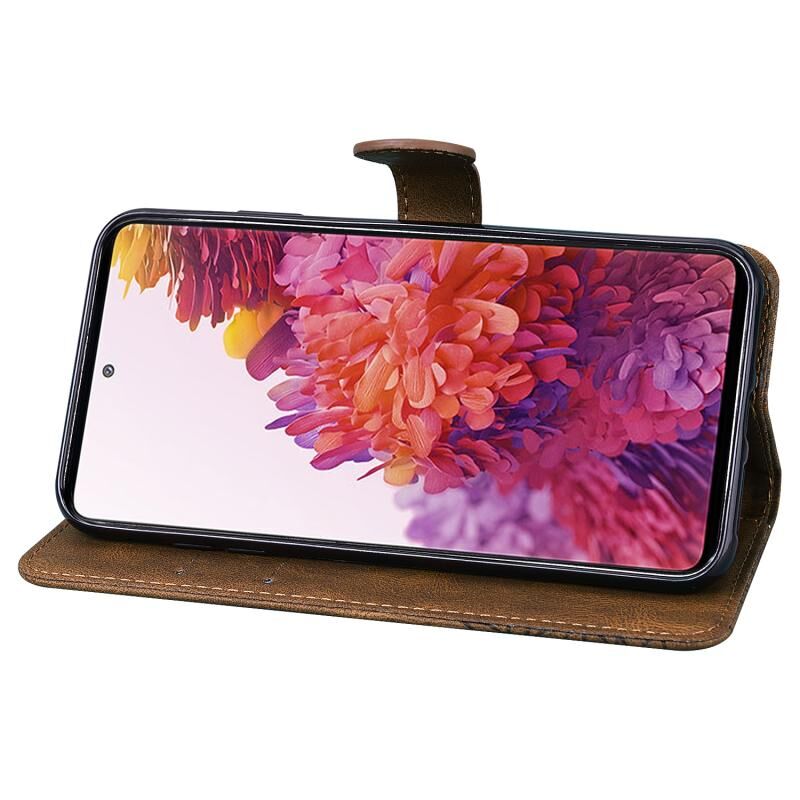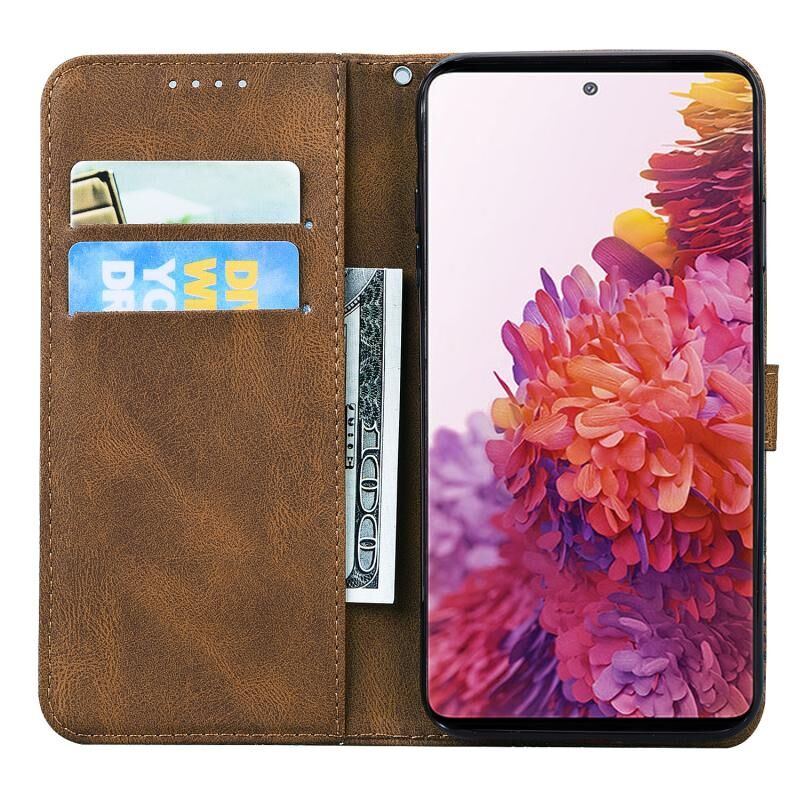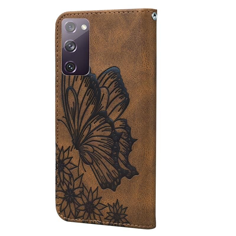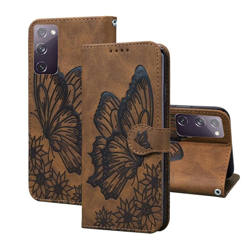 Θήκη Samsung Galaxy S20 FE Retro με υφή δέρματος, ανάγλυφο σχέδιο με πεταλούδες, οριζόντια, από δέρμα με βάση για κάρτες & πορτοφόλι (Καφέ) (FIERRE SHANN)