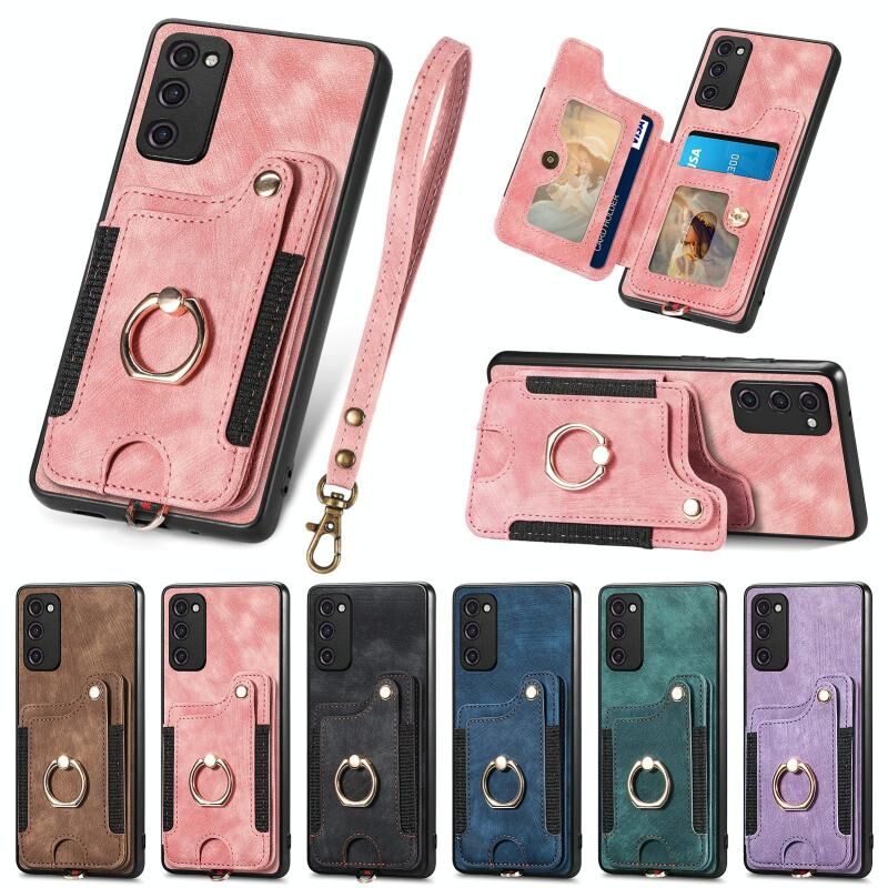 Για Samsung Galaxy S20 FE Ρετρό δέρμα αίσθηση δαχτυλίδι πολυ-κάρτα πορτοφόλι υπόθεση τηλεφώνου (καφέ)