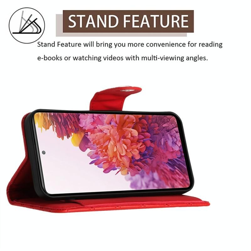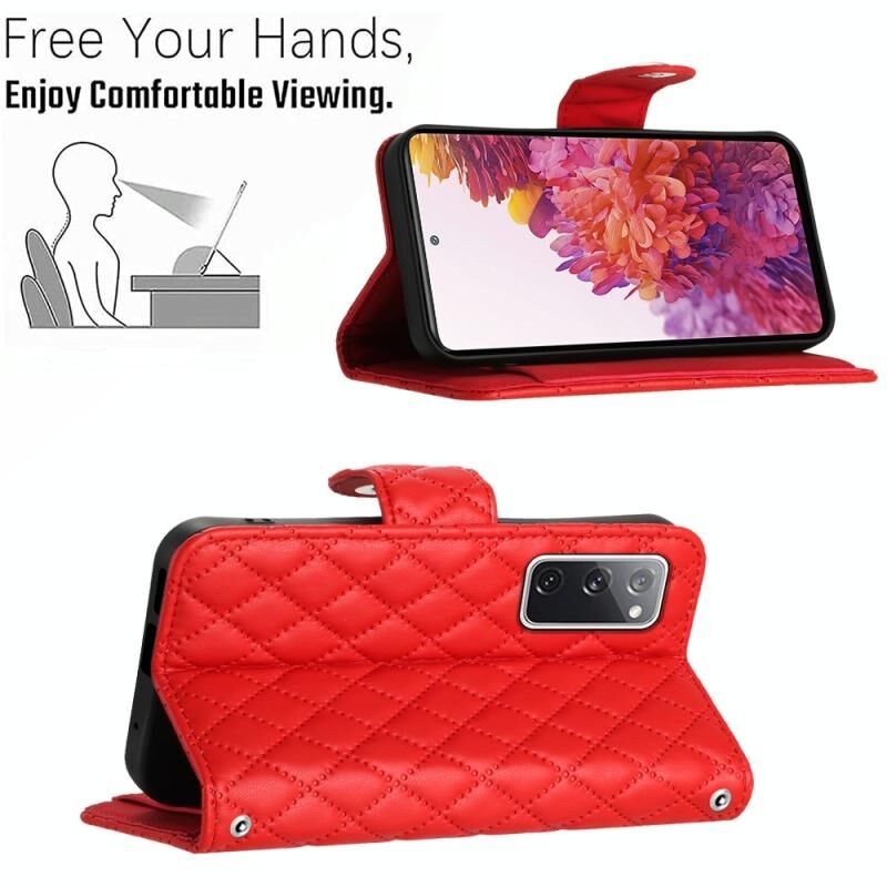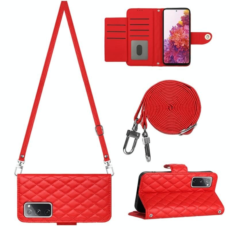 Για Samsung Galaxy S20 FE Ρομβική υφή Flip δερμάτινη θήκη τηλεφώνου με μακρύ κορδόνι (κόκκινο)