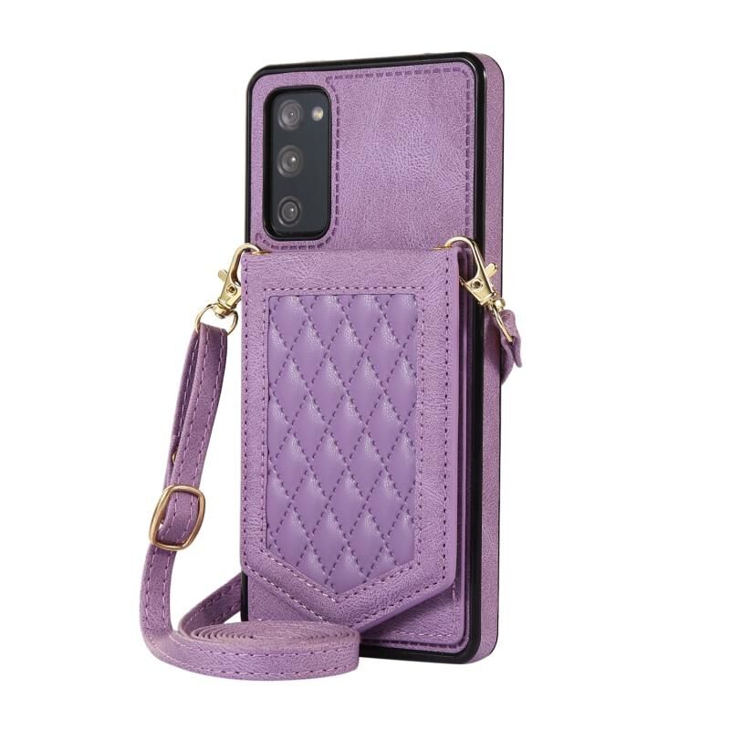 Για Samsung Galaxy S20 FE Rhombic Texture RFID υπόθεση τηλεφώνου με κορδόνι & καθρέφτη (μωβ)