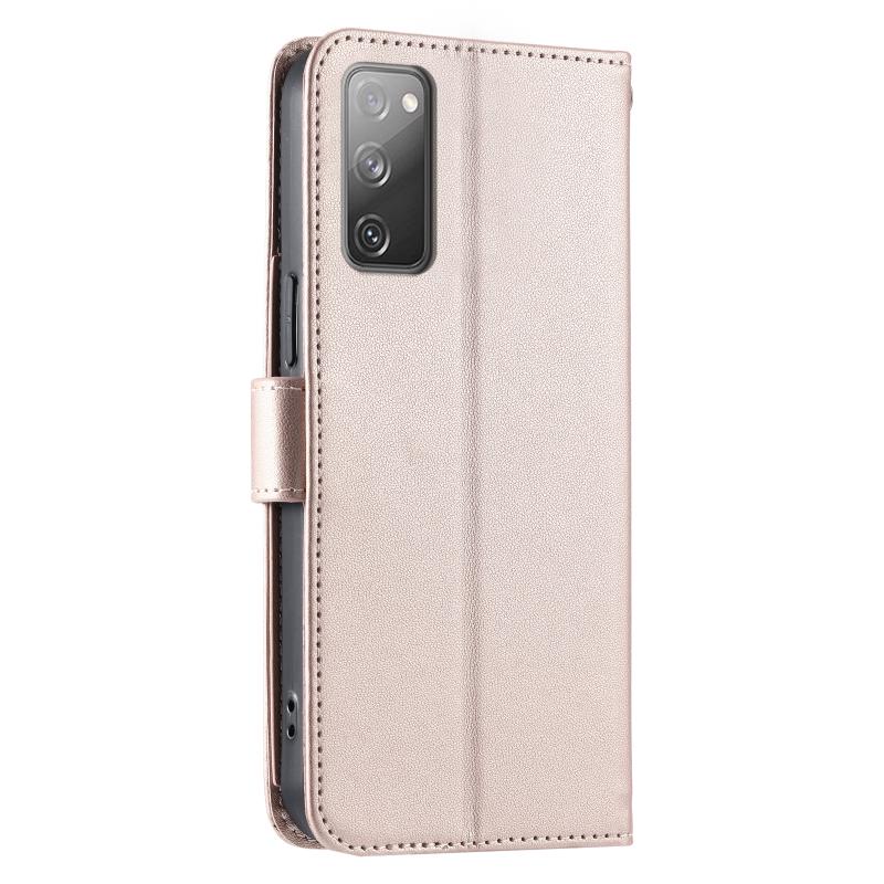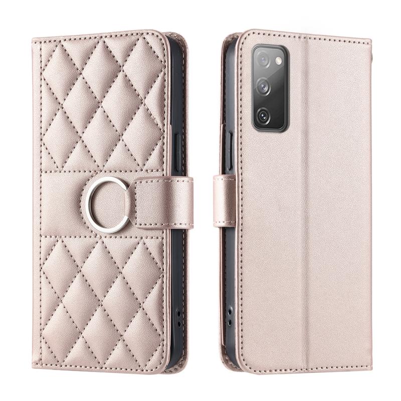 For Samsung Galaxy S20 FE Ring Buckle Rhombic Leather Phone Case(Rose Gold)