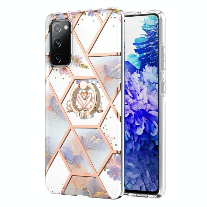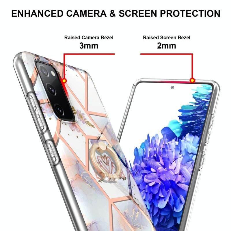 For Samsung Galaxy S20 FE / S20 Lite Electroplating Splicing Marble Flower Pattern TPU Shockproof Case with Rhinestone Ring Holder(Imperial Crown)