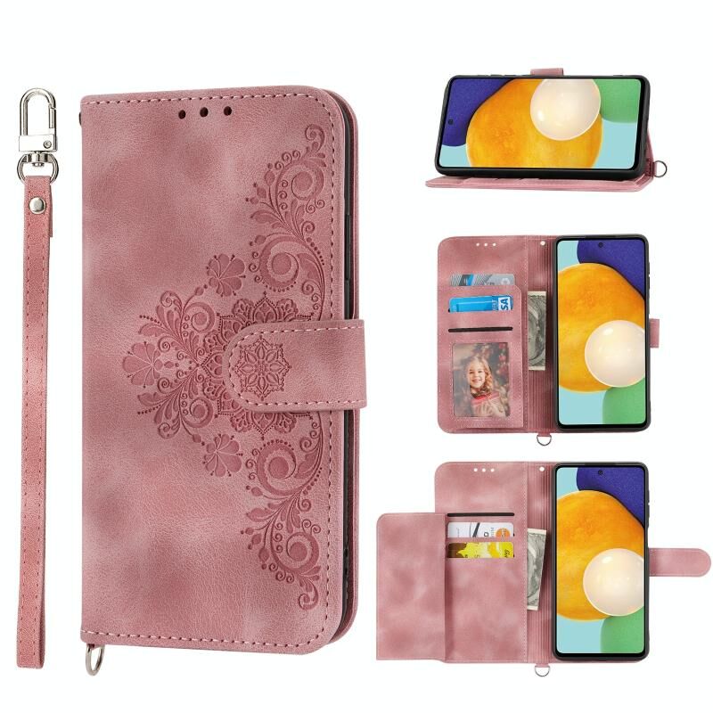 Θήκη τηλεφώνου Samsung Galaxy S20 FE από δέρμα με ανάγλυφα λουλούδια και υφή δέρματος (ρόζ)
