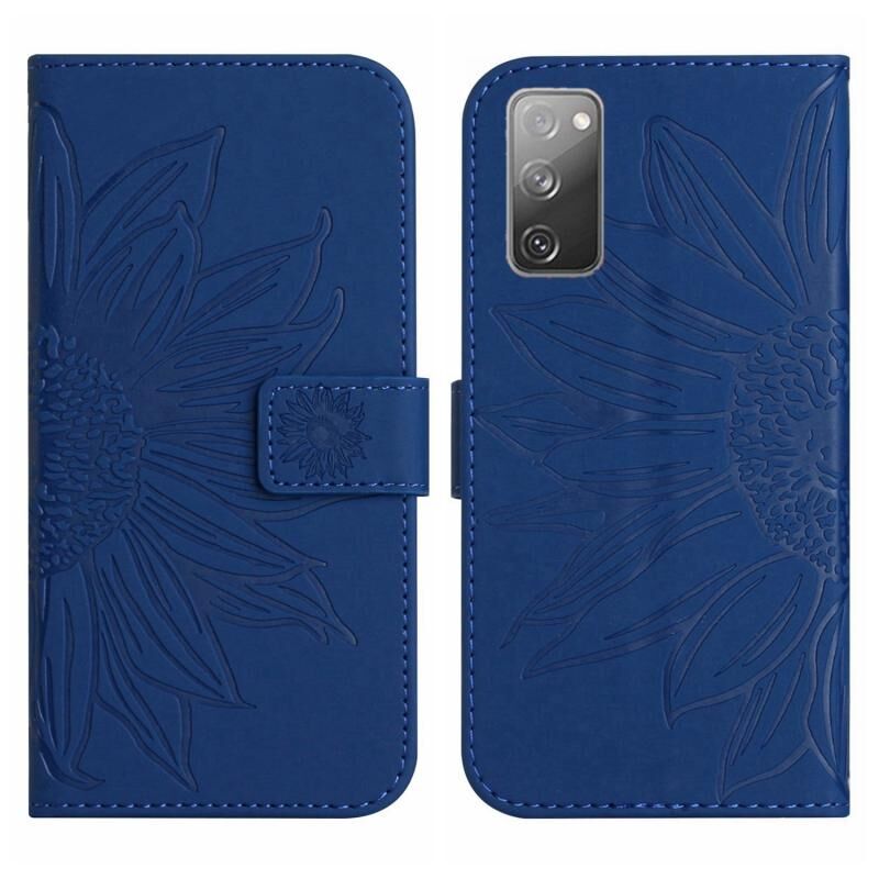 Για το Samsung Galaxy S20 FE δέρμα αίσθηση Sun Flower μοτίβο Flip δέρμα τηλέφωνο υπόθεση με κορδόνι (σκούρο μπλε)