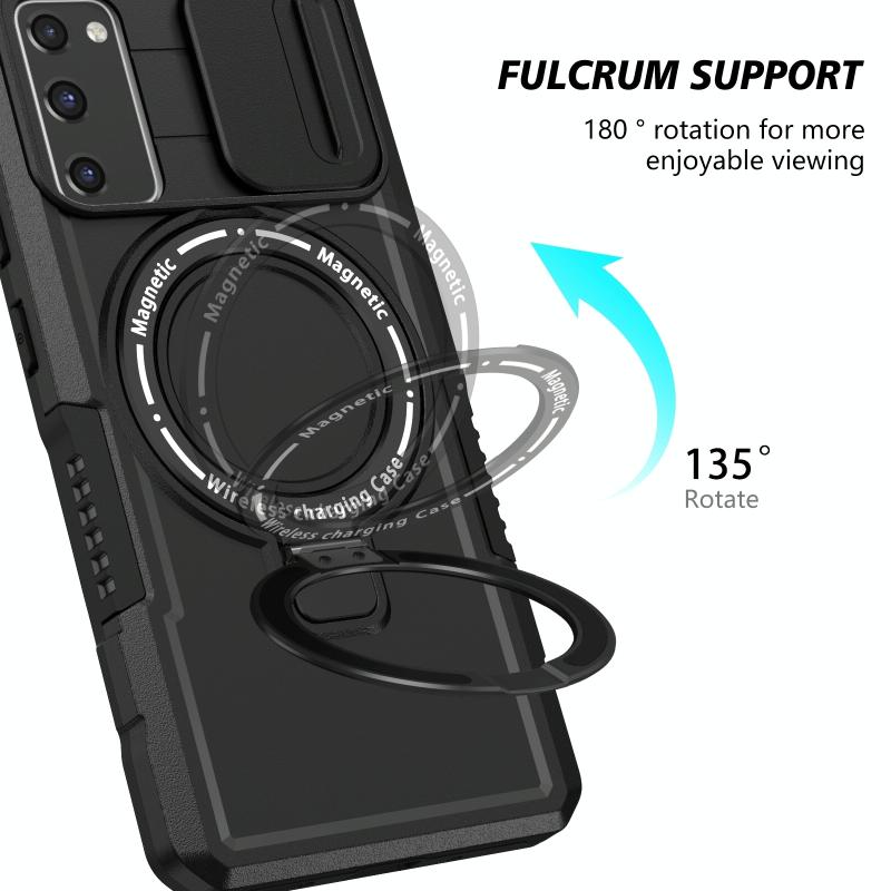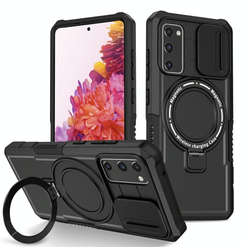 For Samsung Galaxy S20 FE Sliding Camshield Magsafe Holder TPU Hybrid PC Phone Case(Black)