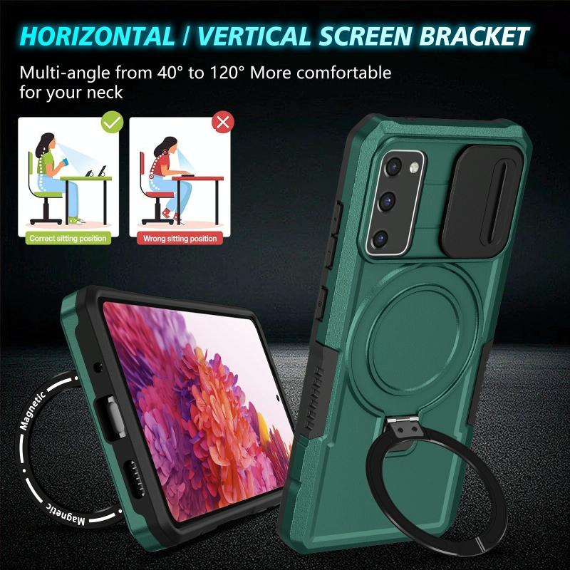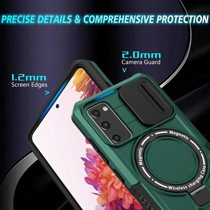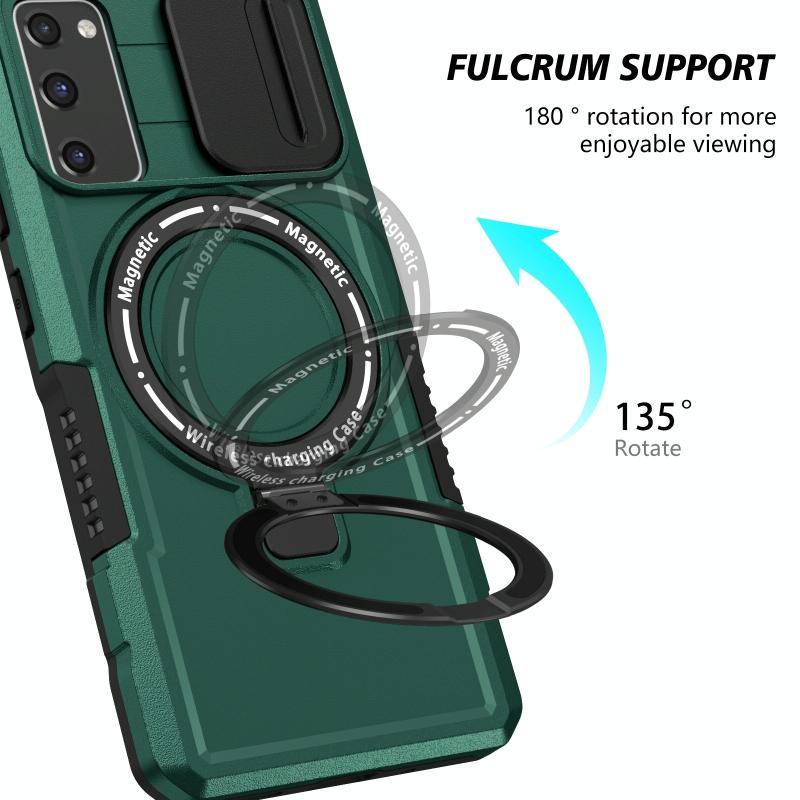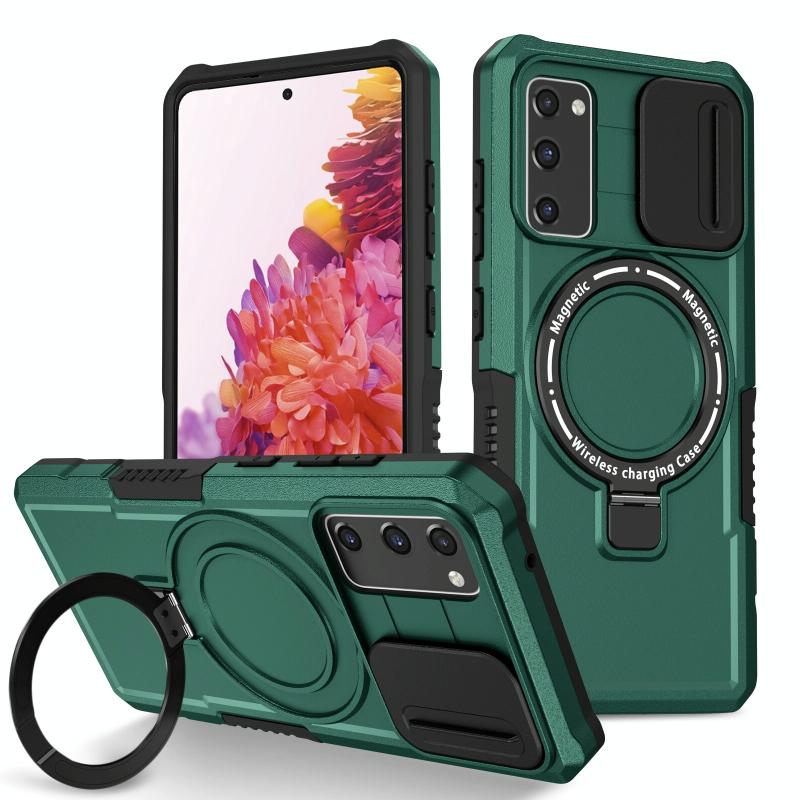For Samsung Galaxy S20 FE Sliding Camshield Magsafe Holder TPU Hybrid PC Phone Case(Deep Green)