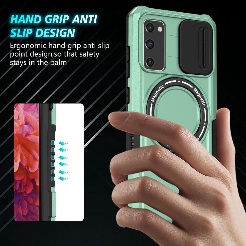 For Samsung Galaxy S20 FE Sliding Camshield Magsafe Holder TPU Hybrid PC Phone Case(Light Blue)