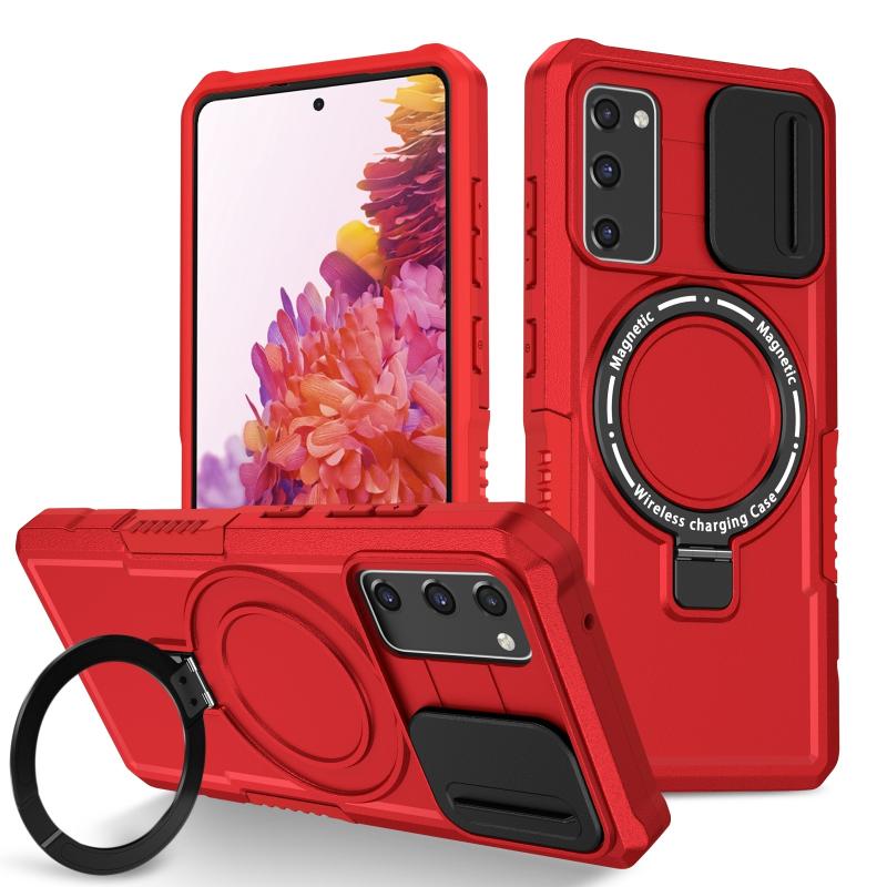 For Samsung Galaxy S20 FE Sliding Camshield Magsafe Holder TPU Hybrid PC Phone Case(Red)