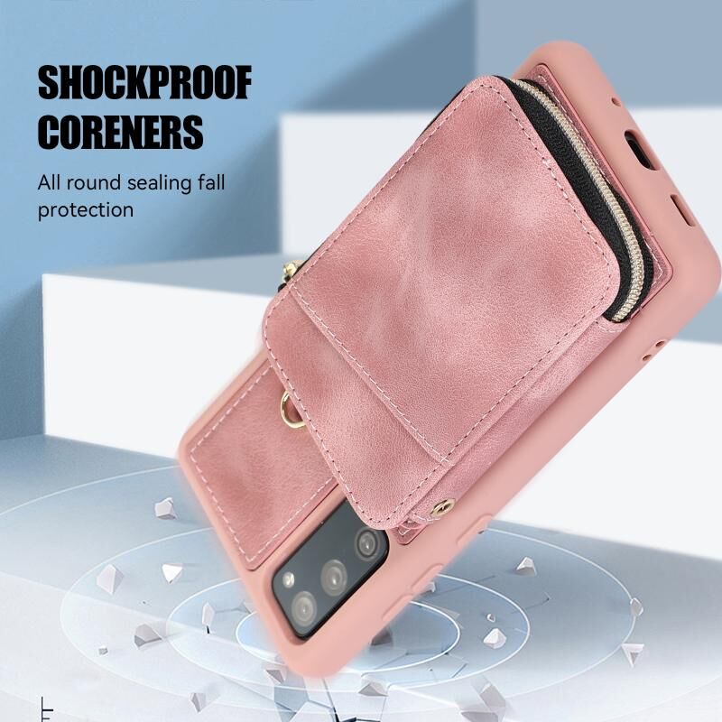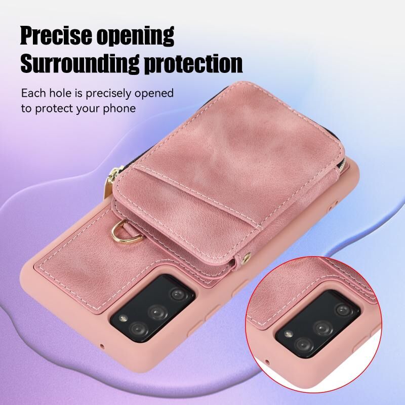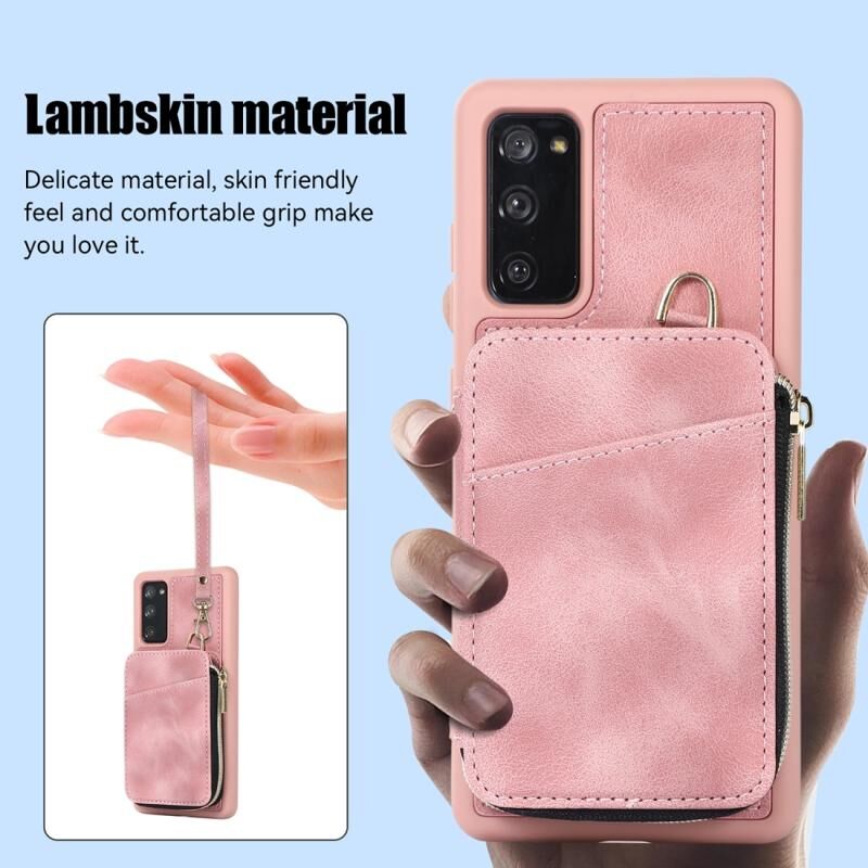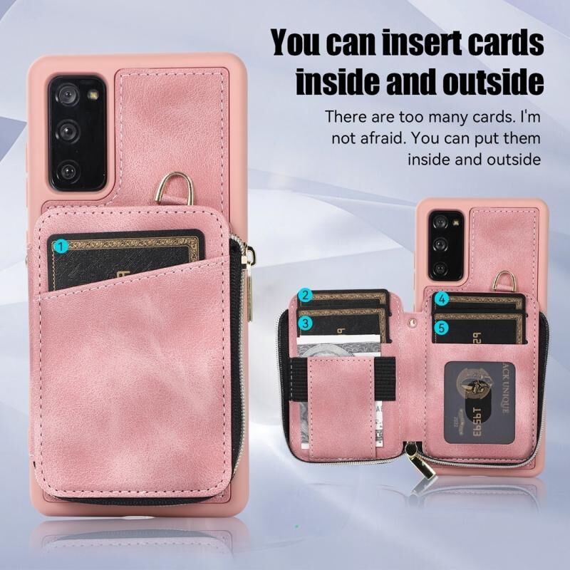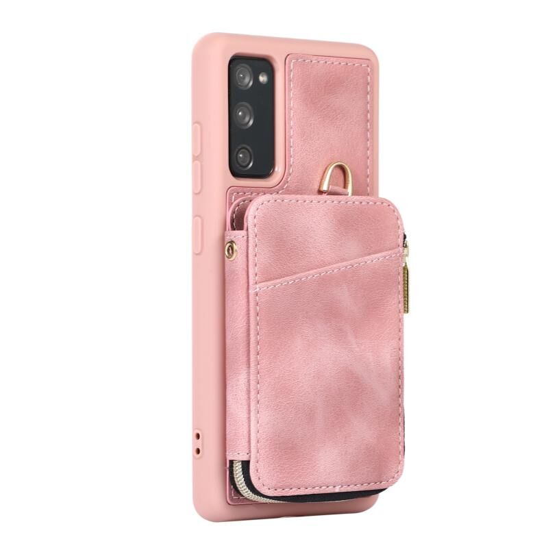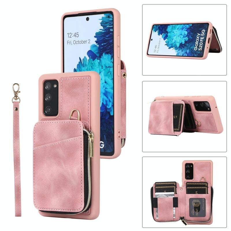 Για Samsung Galaxy S20 FE φερμουάρ κάρτα τσάντα πίσω κάλυμμα θήκη τηλεφώνου (ροζ)