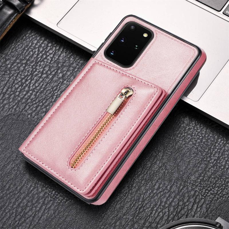 Θήκη κινητού τηλεφώνου με κάρτες και φερμουάρ για Samsung Galaxy S20 FE (Ροζ Χρυσό)