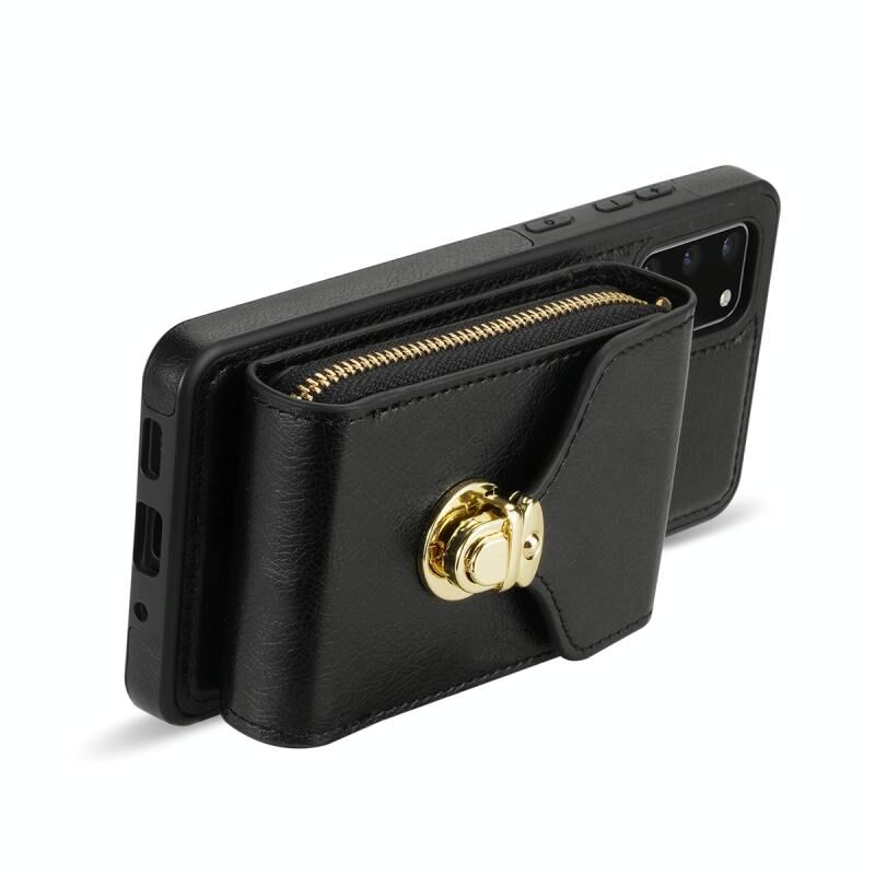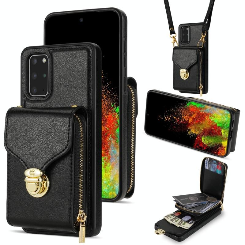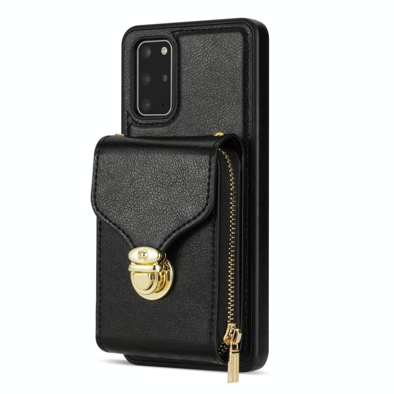 Για Samsung Galaxy S20 FE φερμουάρ υλικό κάρτα πορτοφόλι τηλέφωνο υπόθεση (μαύρο)