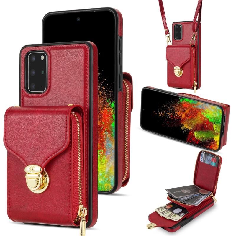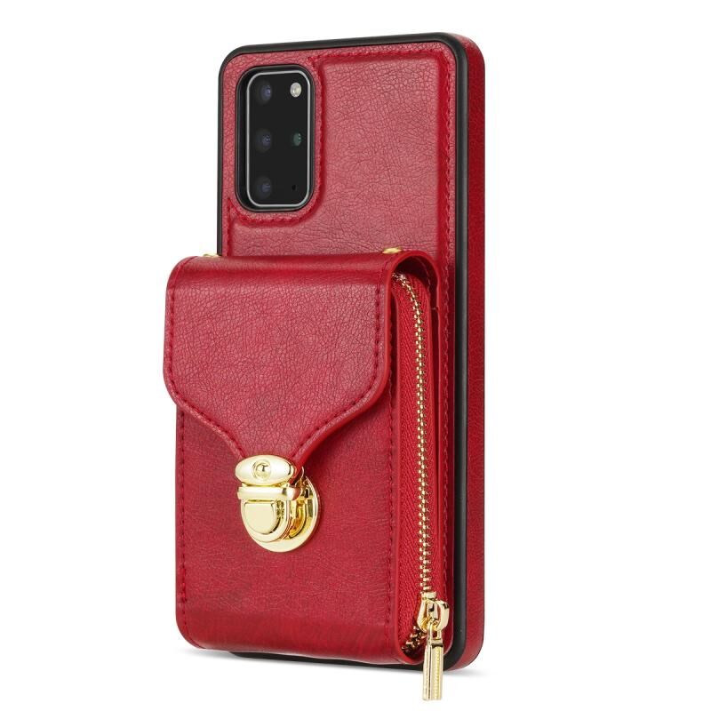 Για Samsung Galaxy S20 FE φερμουάρ υλικό κάρτα πορτοφόλι τηλέφωνο υπόθεση (κόκκινο)