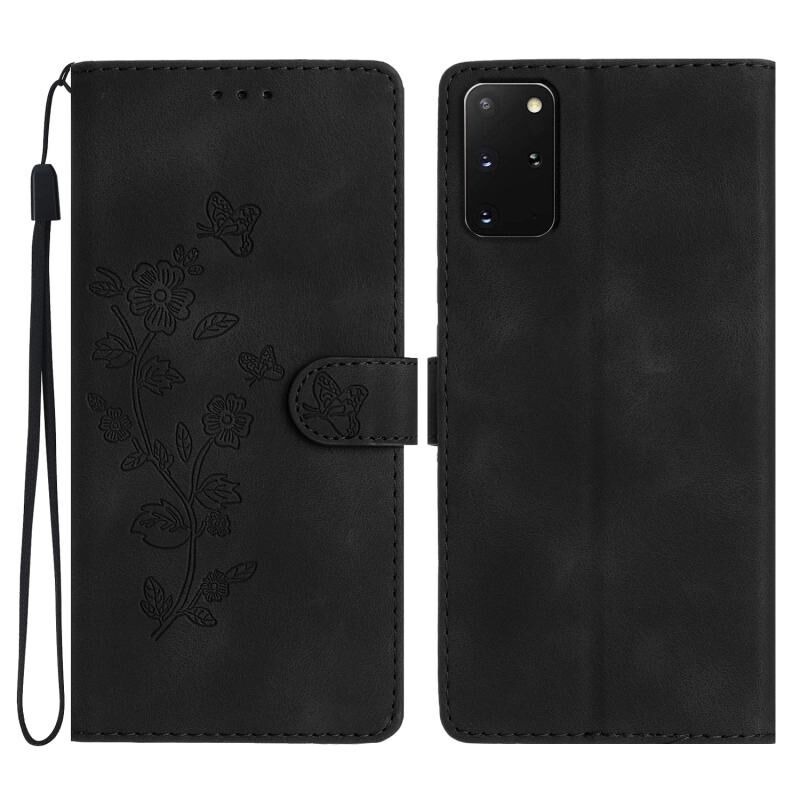 Για Samsung Galaxy S20 + λουλούδι πεταλούδα ανάγλυφο μοτίβο δερμάτινη θήκη τηλεφώνου (μαύρο)