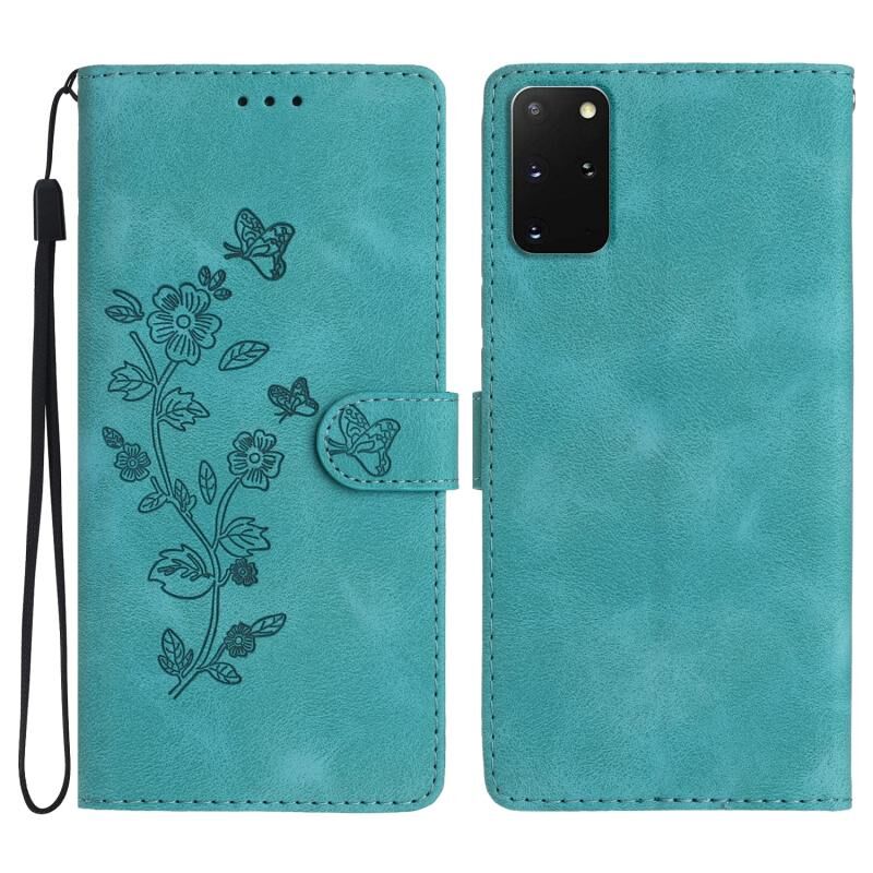 Για Samsung Galaxy S20 + λουλούδι πεταλούδα ανάγλυφο μοτίβο δερμάτινη θήκη τηλεφώνου (Sky Blue)