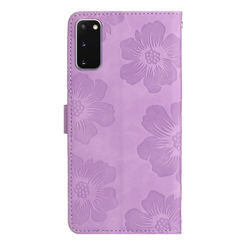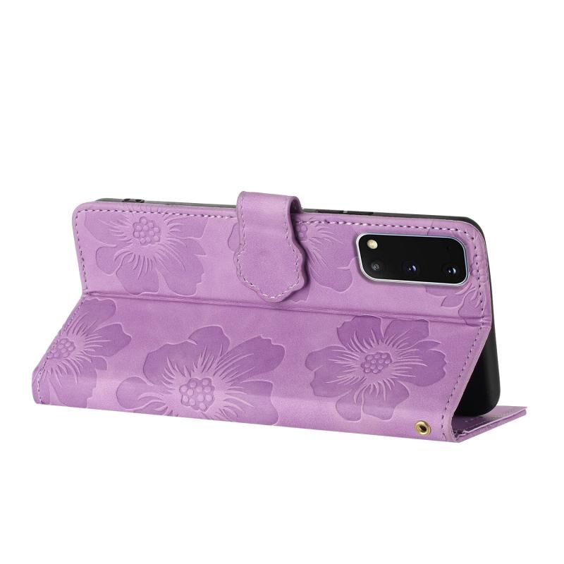Για Samsung Galaxy S20 λουλούδι ανάγλυφο μοτίβο δερμάτινη θήκη τηλεφώνου (μωβ)