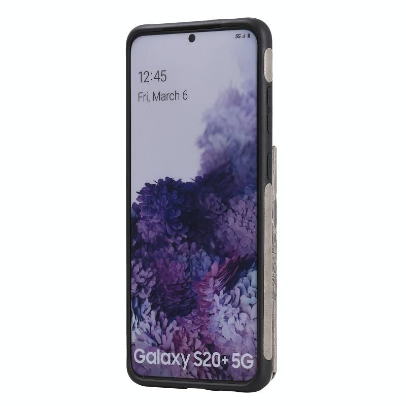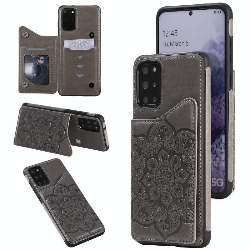 Για Samsung Galaxy S20+ Λουλούδι ανάγλυφο μοτίβο Shockproof προστατευτική θήκη με θήκη & υποδοχές για κάρτες & πλαίσιο φωτογραφιών (Γκρι)
