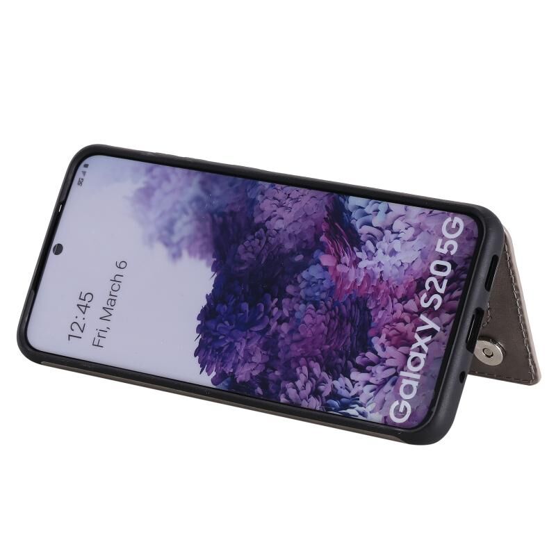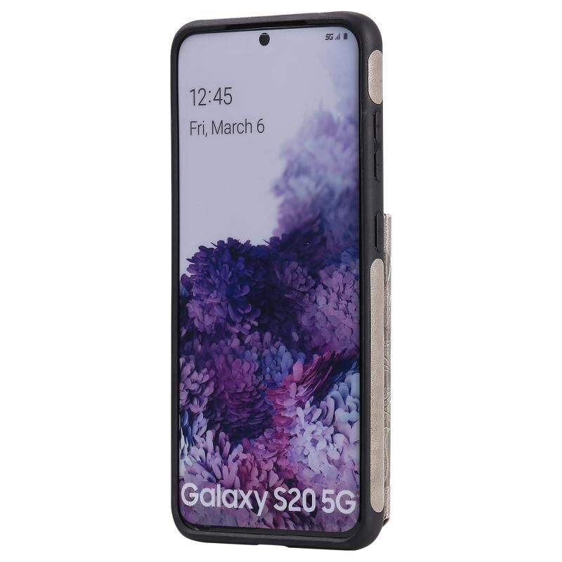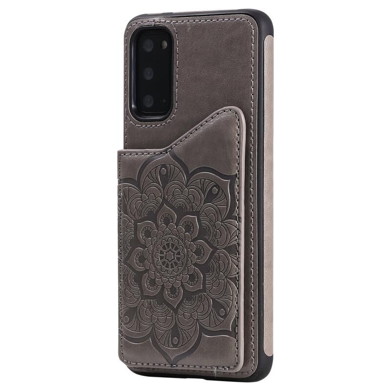 Για Samsung Galaxy S20 λουλούδι ανάγλυφο μοτίβο Shockproof προστατευτική θήκη με θήκη & υποδοχές για κάρτες & πλαίσιο φωτογραφιών (Γκρι)