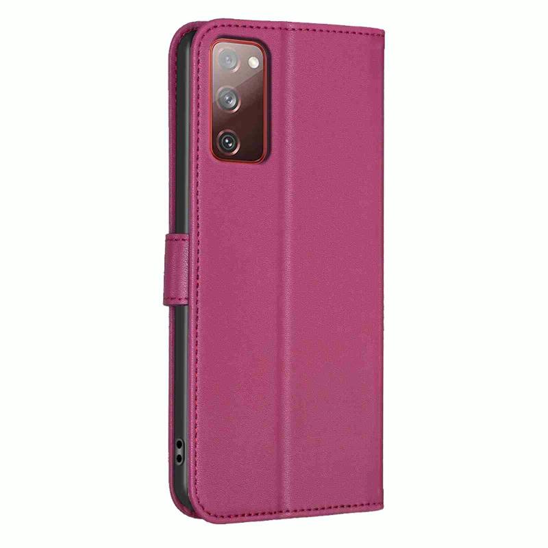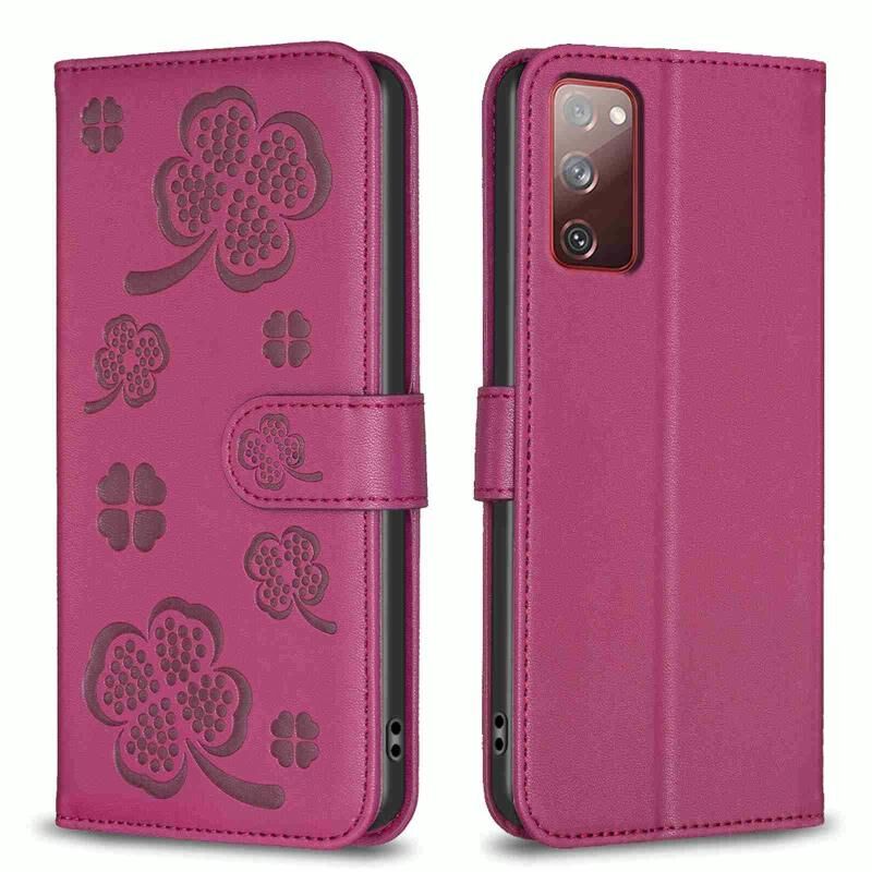For Samsung Galaxy S20 Four-leaf Embossed Leather Phone Case(Rose Red)