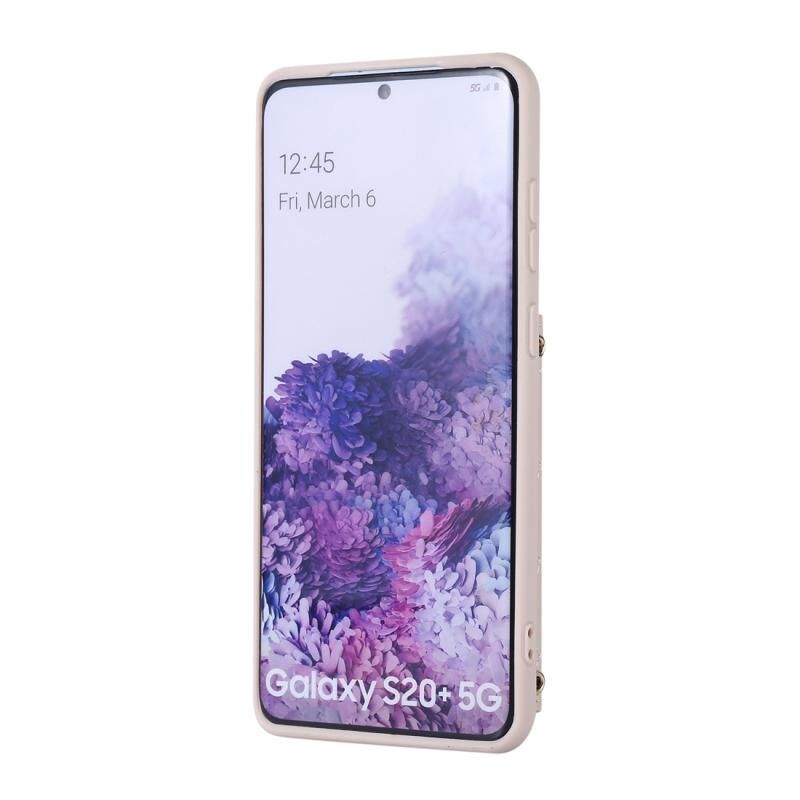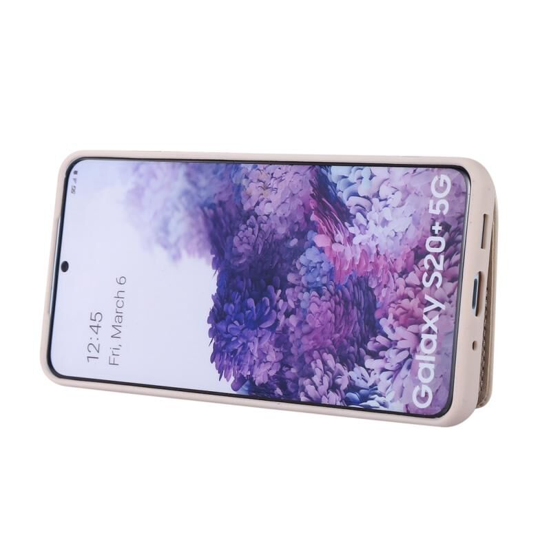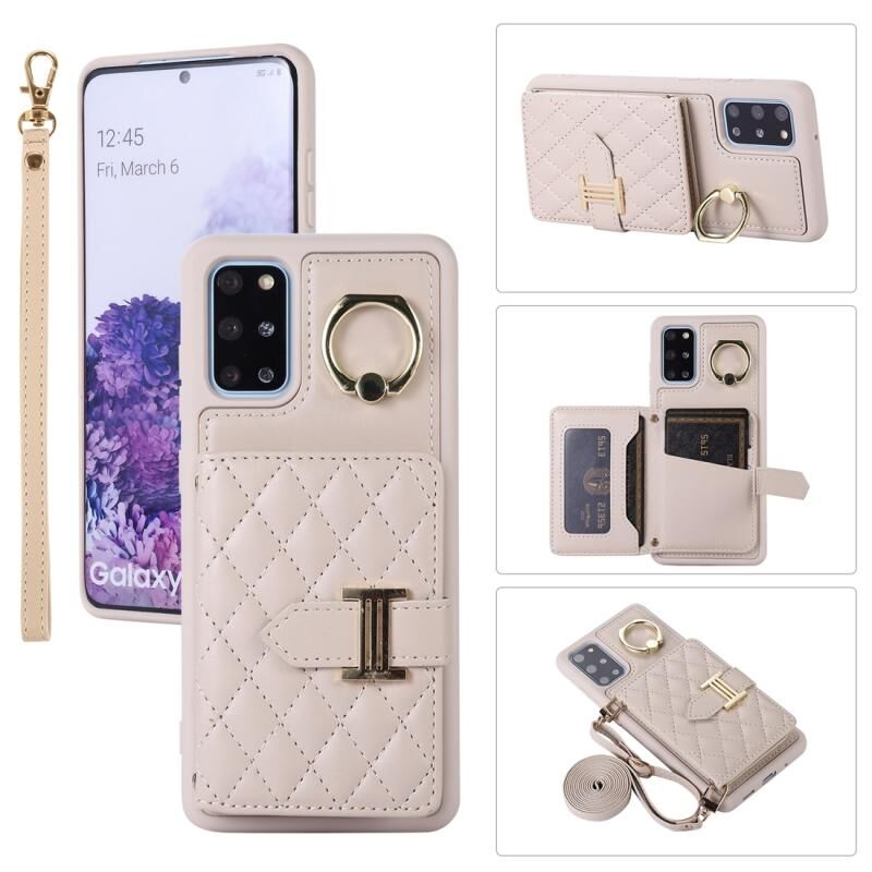 Για Samsung Galaxy S20+ Οριζόντια κάρτα τσάντα δαχτυλίδι τσάντα κάτοχος υπόθεση τηλεφώνου με διπλό κορδόνι (μπεζ)