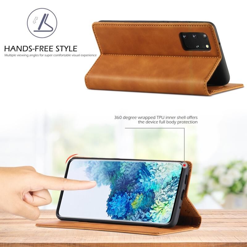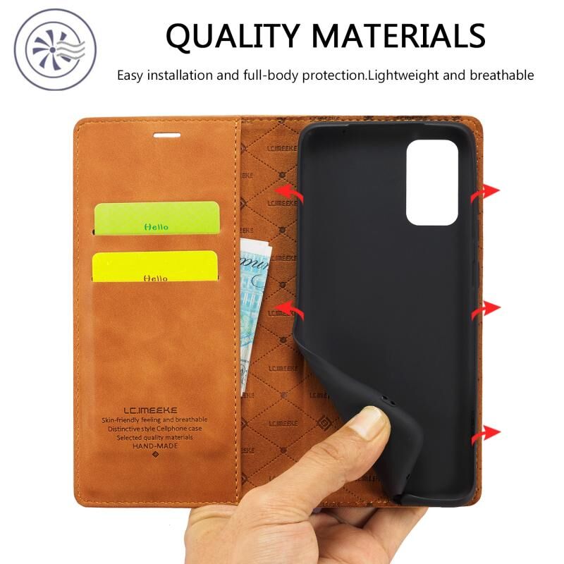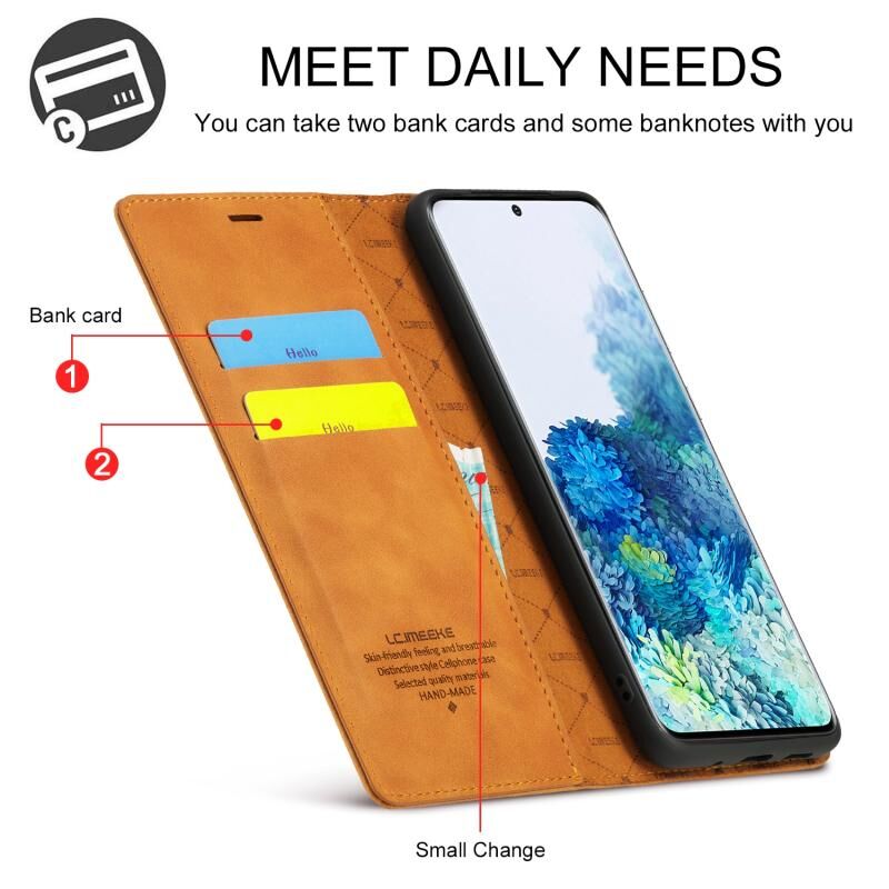 Για Samsung Galaxy S20+ LC.IMEEKE Ισχυρός Μαγνητισμός Εξαιρετικά Λεπτή Οριζόντια Αντικραδασμική Ματ Θήκη TPU + Δερμάτινη PU με Στήριξη & Θήκες Καρτών & Πορτοφόλι (Μαύρο) (Καφέ)