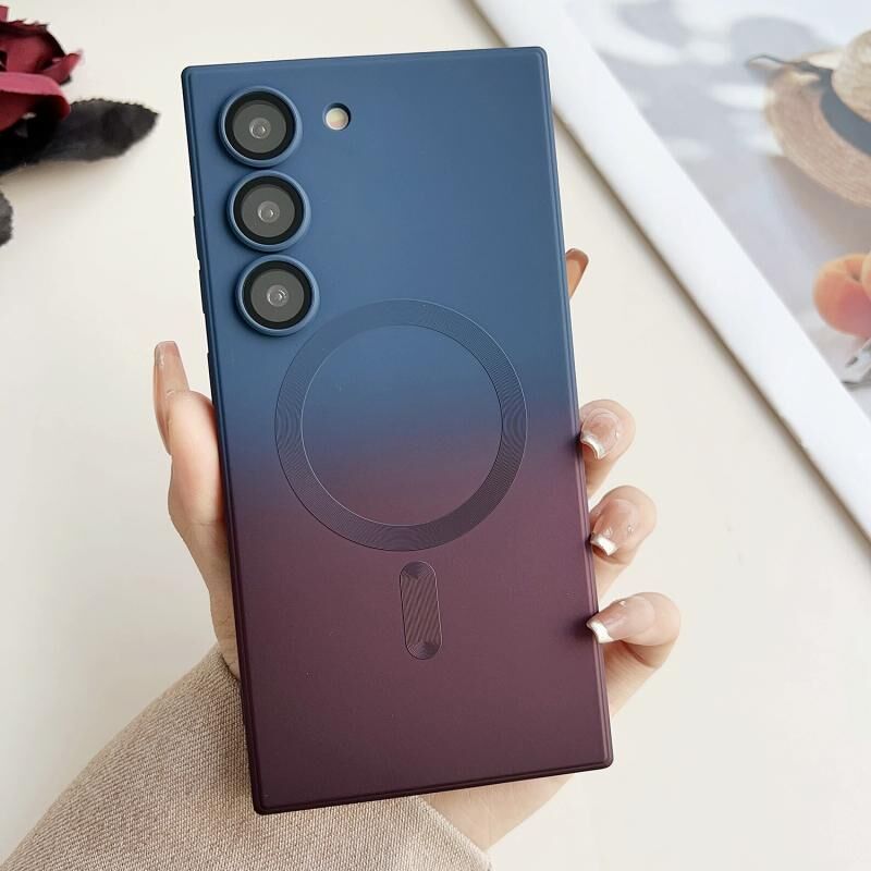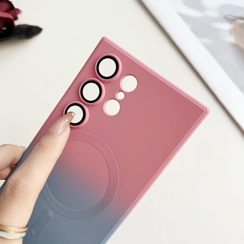 Θήκη τηλεφώνου για Samsung Galaxy S20, υγρή σιλικόνη TPU, διαβαθμιστικό χρώμα MagSafe (Μπλε-Κόκκινο Διαβάθμιση)
