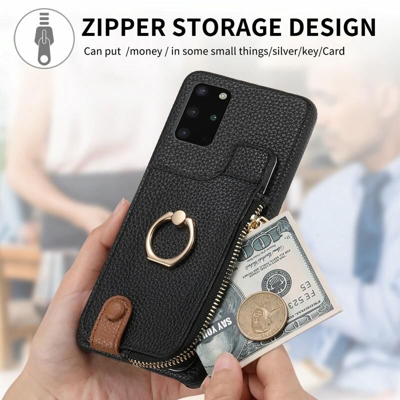 Για Samsung Galaxy S20 + Litchi δέρμα λάδι Edge δαχτυλίδι φερμουάρ πορτοφόλι πίσω θήκη τηλεφώνου (Μαύρο)