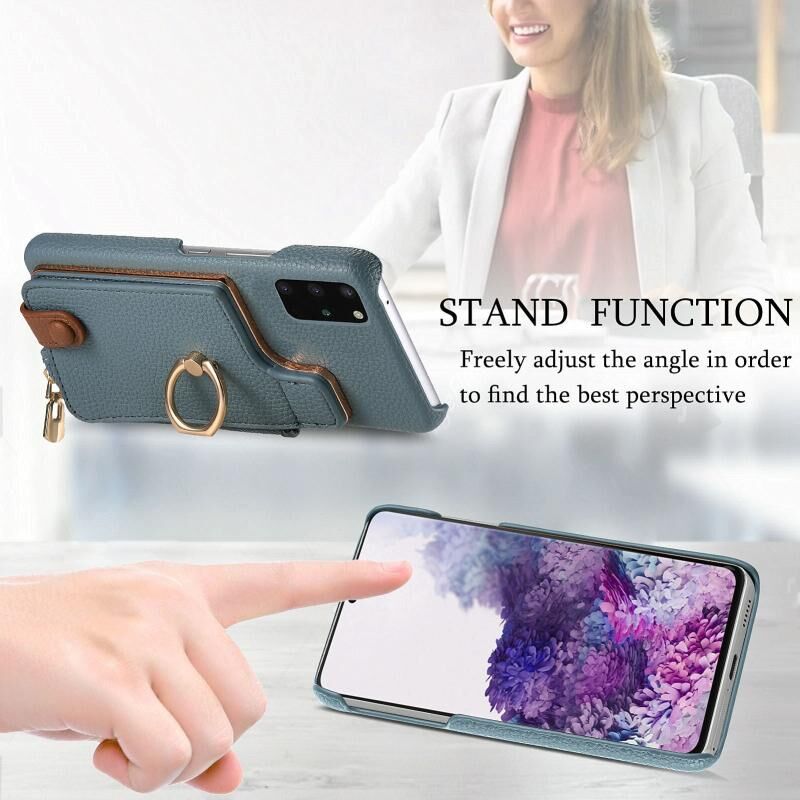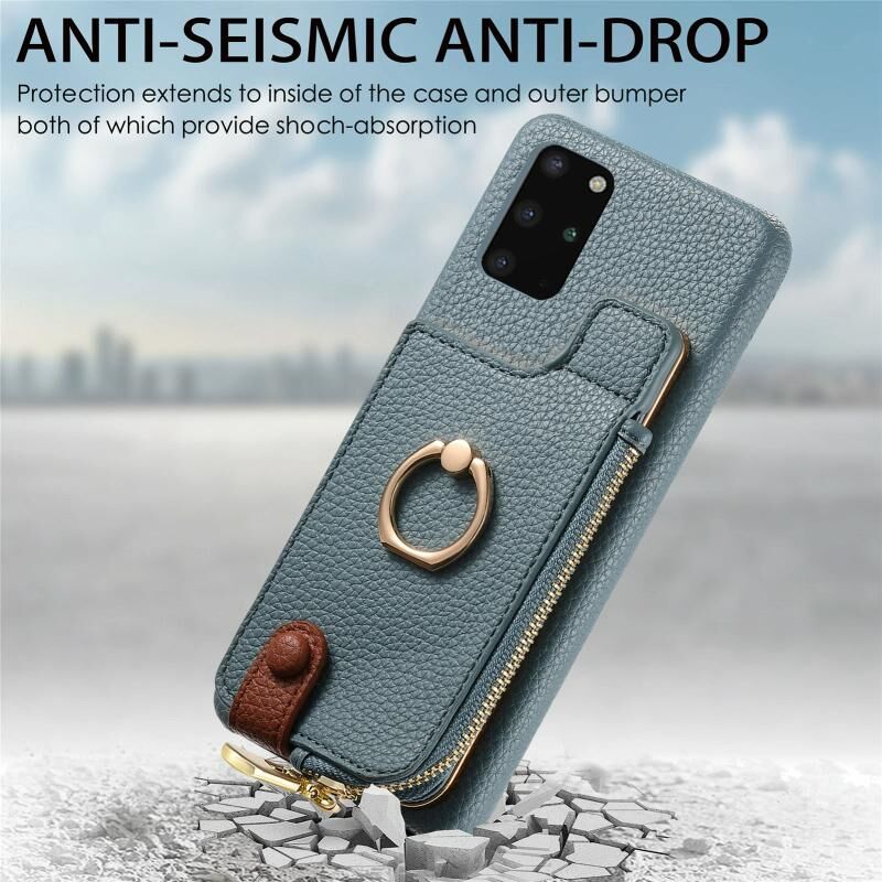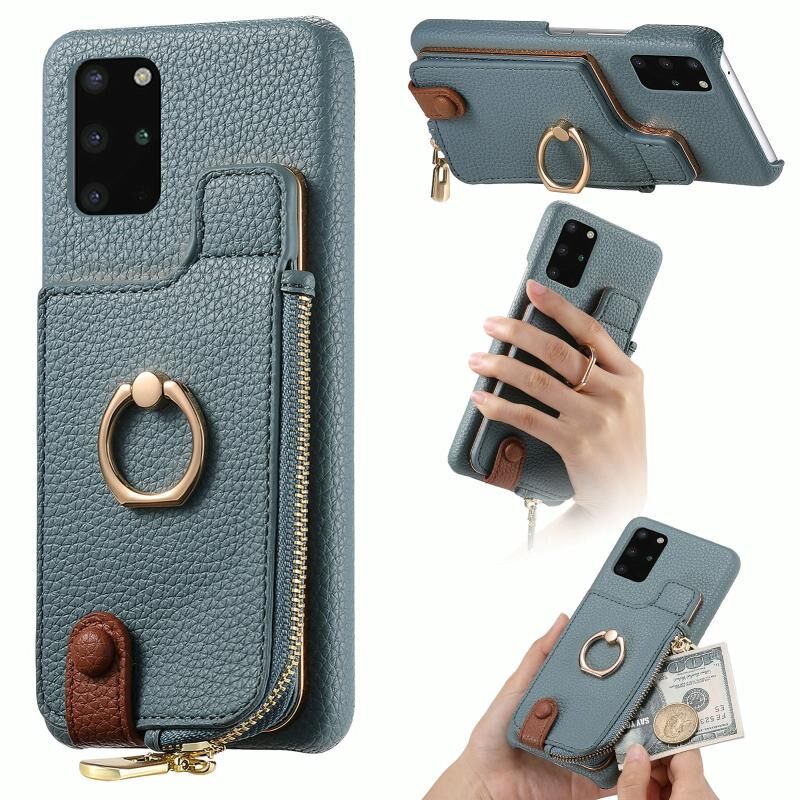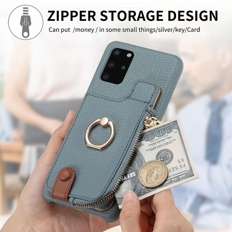 Για Samsung Galaxy S20 + Litchi δέρμα λάδι Edge δαχτυλίδι φερμουάρ πορτοφόλι πίσω υπόθεση τηλεφώνου (Μπλε)