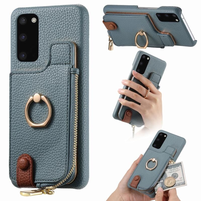 Για Samsung Galaxy S20 Litchi δέρμα λάδι Edge δαχτυλίδι φερμουάρ πορτοφόλι πίσω υπόθεση τηλεφώνου (μπλε)