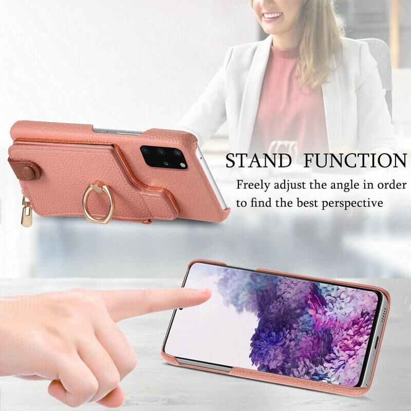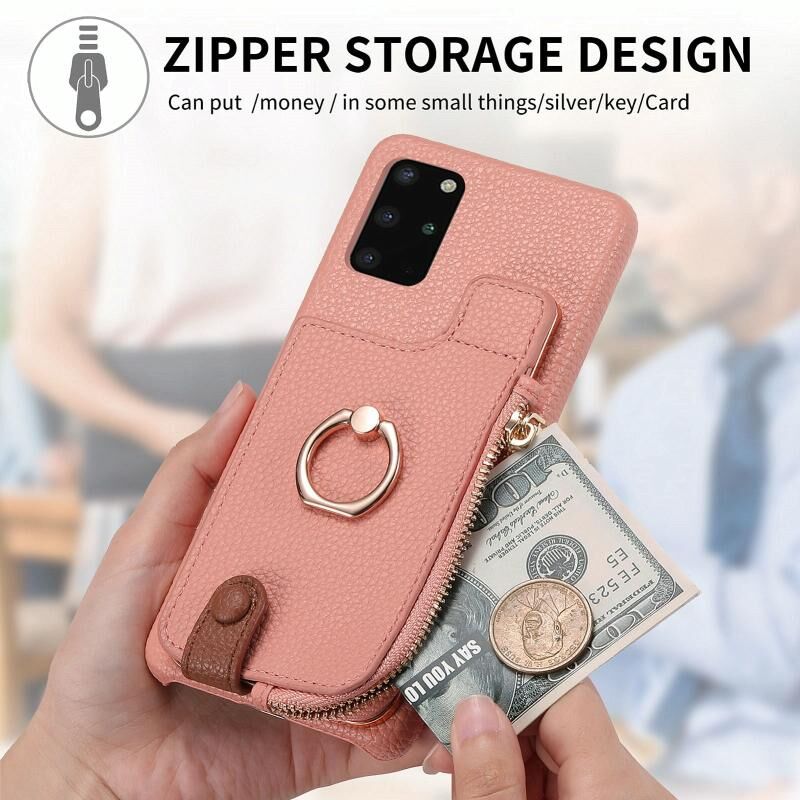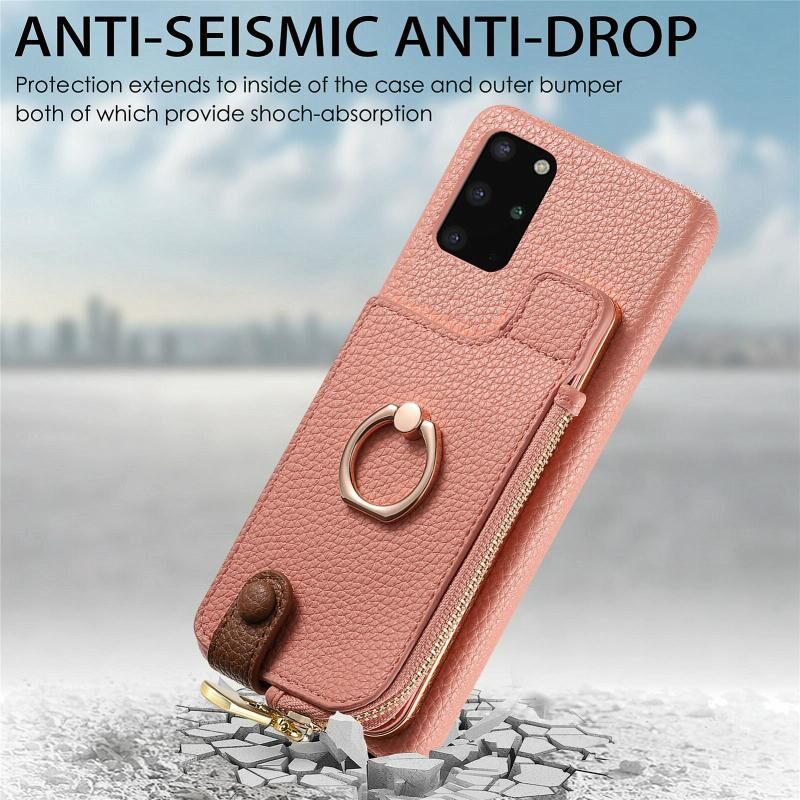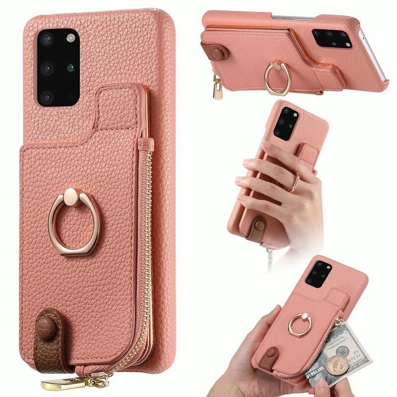 Για Samsung Galaxy S20 + Litchi δέρμα λάδι Edge δαχτυλίδι φερμουάρ πορτοφόλι πίσω υπόθεση τηλεφώνου (ρόζ)