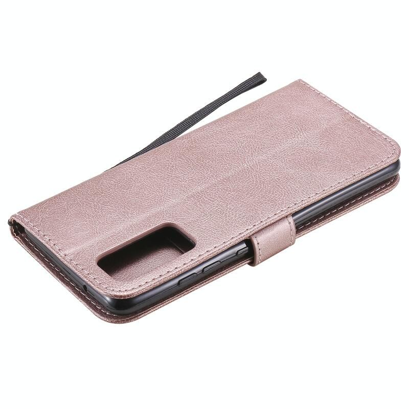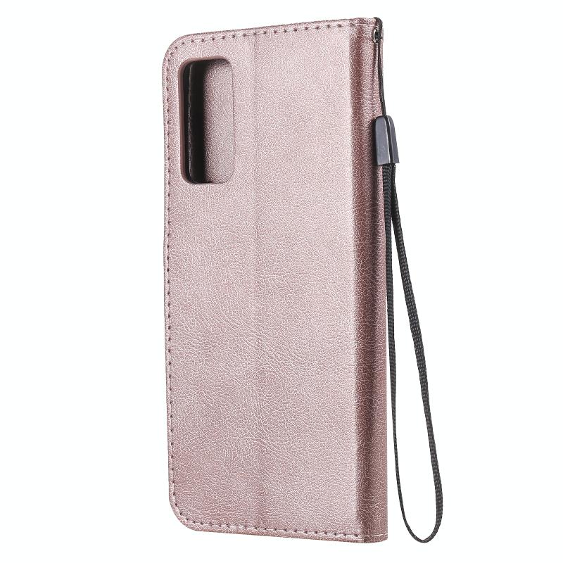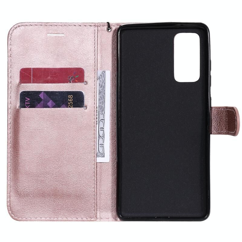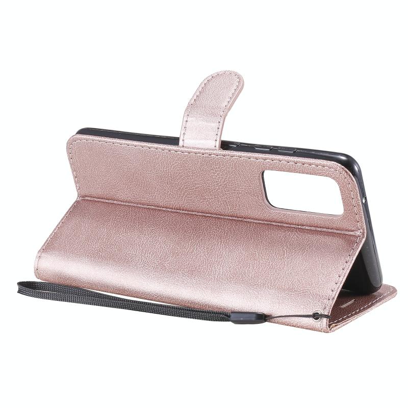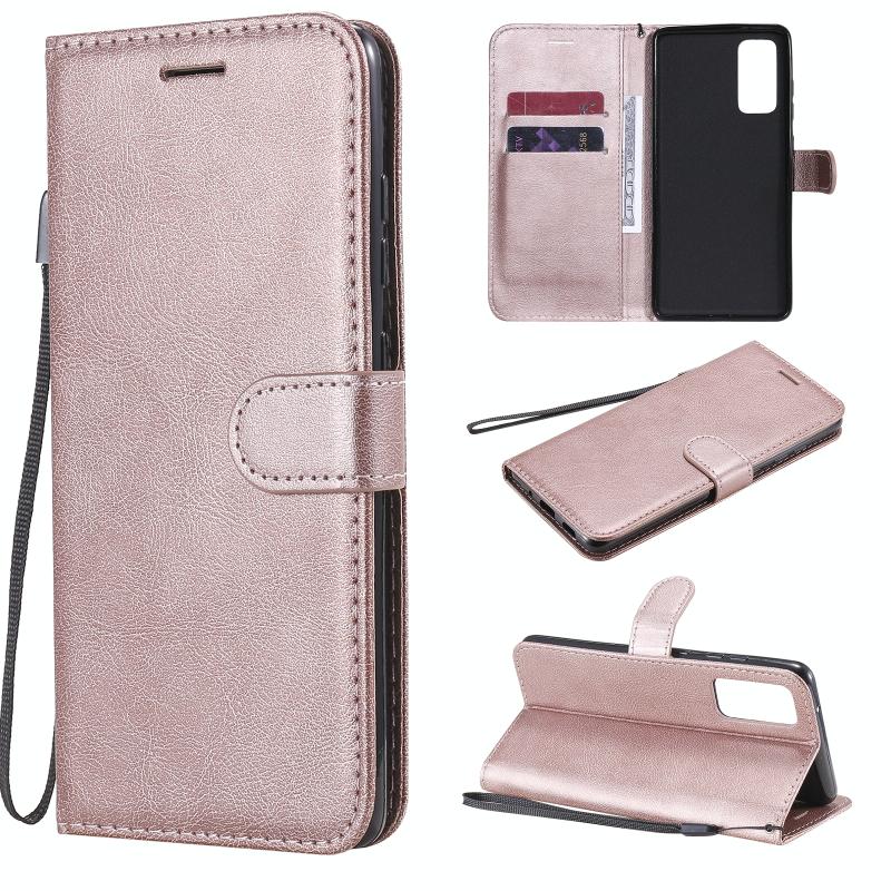 Για Samsung Galaxy S20 Lite / S20 FE 5G / S20 Fan Edition Μονόχρωμη Οριζόντια Θήκη Προστασίας από Δέρμα με Θήκη & Θήκες Καρτών & Πορτοφόλι & Κορνίζα Φωτογραφιών & Λουρί (Χρυσό Ρόδι)