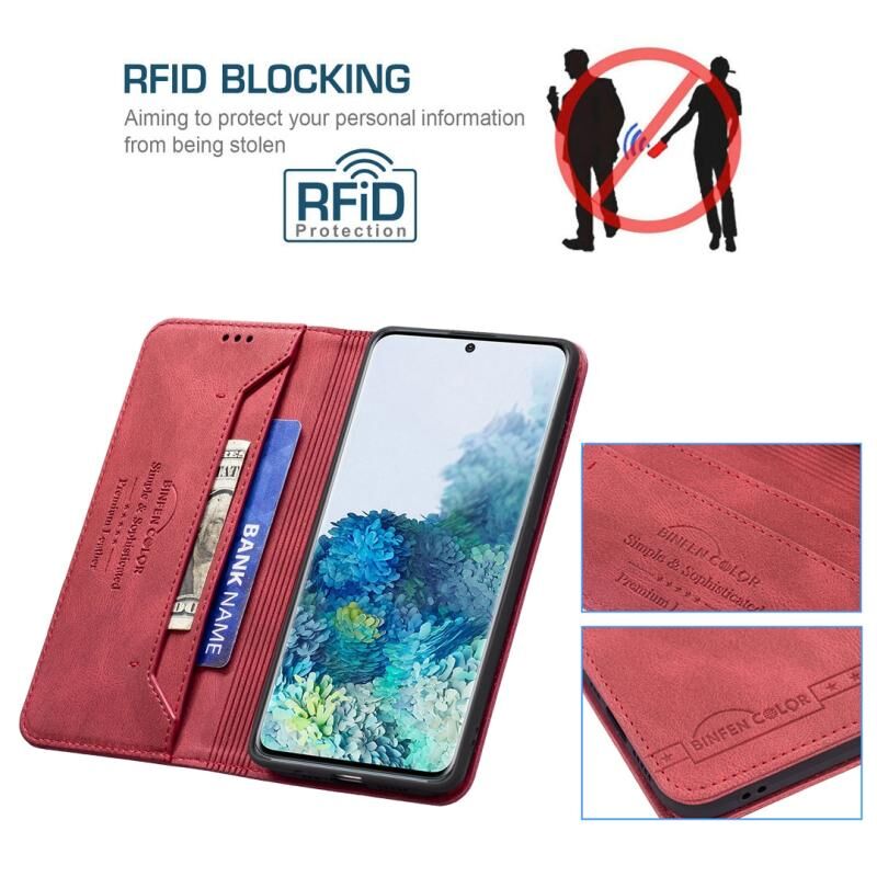Για Samsung Galaxy S20+ Μαγνητικό RFID Blocking Anti-Theft δερμάτινη θήκη με θήκη & υποδοχές για κάρτες & πορτοφόλι (Κόκκινο)