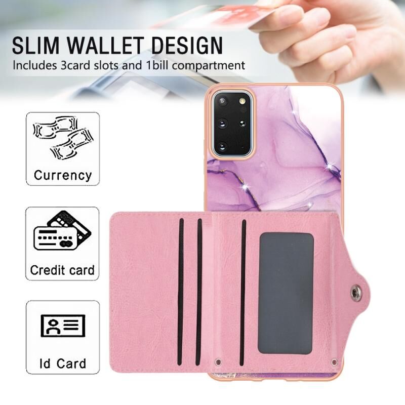Θήκη κινητού τηλεφώνου με θήκη κάρτας IMD με σχέδιο μάρμαρου για Samsung Galaxy S20+ (Ροζ Μωβ Χρυσό)