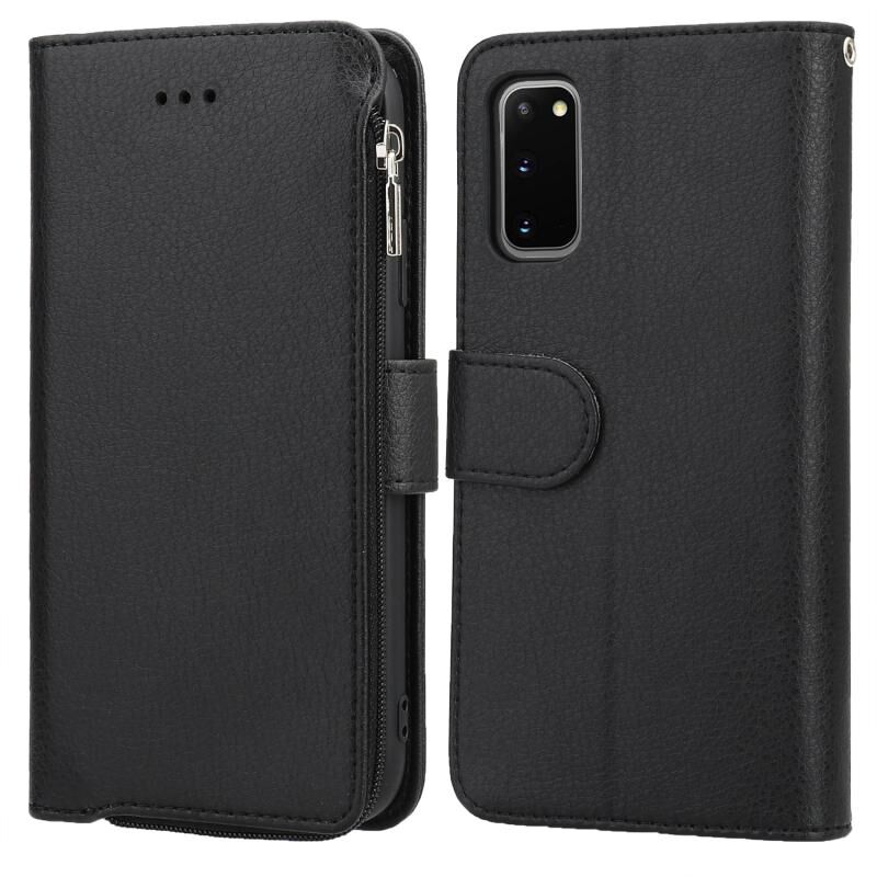 Για το Samsung Galaxy S20+ Microfiber φερμουάρ οριζόντια Flip δερμάτινη θήκη (Μαύρο)