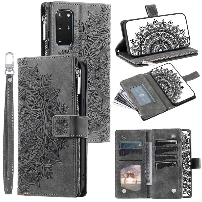 For Samsung Galaxy S20+ Multi-Card Totem Zipper Leather Phone Case(Grey)