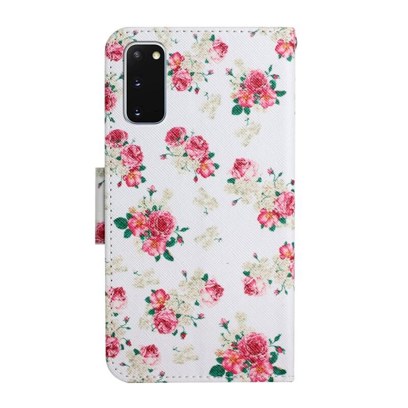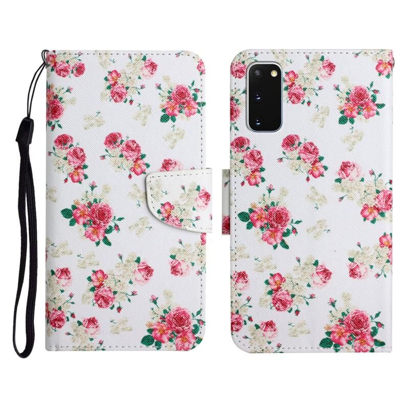 Θήκη Samsung Galaxy S20 από Δέρμα με Οριζόντιο Άνοιγμα, με Σχέδιο Ζωγραφικής, Θήκη για Κάρτες & Πορτοφόλι (Κόκκινο Λουλούδι)