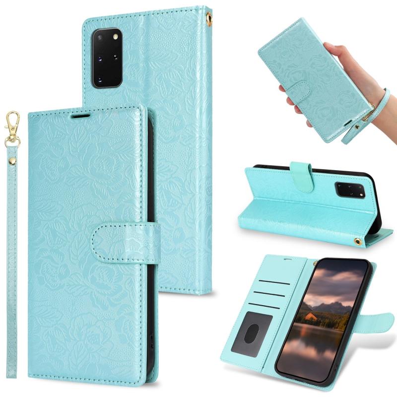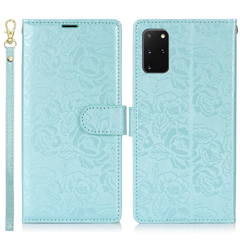 For Samsung Galaxy S20+ Peony Flowers Imprint Leather Phone Case(Sky Blue)