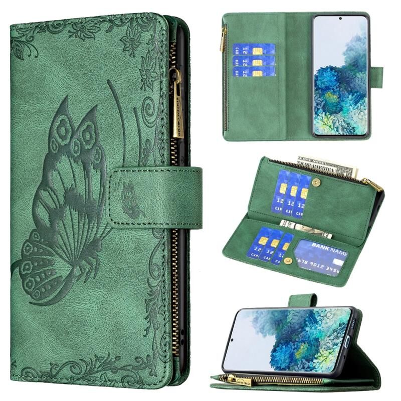 Για Samsung Galaxy S20 Plus Flying πεταλούδα ανάγλυφο μοτίβο φερμουάρ οριζόντια Flip δερμάτινη θήκη με κάτοχο & υποδοχές για κάρτες & πορτοφόλι (πράσινο)