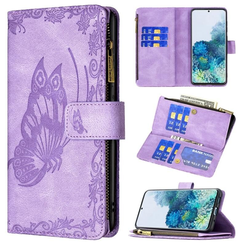 Για Samsung Galaxy S20 Plus Flying πεταλούδα ανάγλυφο μοτίβο φερμουάρ οριζόντια Flip δερμάτινη θήκη με κάτοχο & υποδοχές για κάρτες & πορτοφόλι (μωβ)